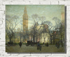 "Afternoon Madison Square" by Theodore Earl Butler captures the essence of a tranquil New York afternoon. The play of light and shadow on the bustling cityscape, rendered with impressionistic brushstrokes, brings to life the dynamic energy and serenity of Madison Square. Butler's use of vibrant colors and meticulous attention to detail immerses the viewer in the urban ambiance, where architecture and nature harmoniously coexist. The painting seamlessly blends the organic and the man-made, inviting contemplation on the intersection of modernity and nature within the heart of the city.