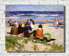 Immerse yourself in the timeless beauty of Edward Henry Potthast's "On the Beach, Ogunquit, Maine (1924)." This captivating beach scene effortlessly captures the essence of a serene day on the coast. The warm hues of the sunlit sand blend seamlessly with the cool tones of the ocean, creating a harmonious symphony of nature. Potthast's masterful use of light and shadow brings life to the scene, as beachgoers engage in leisurely activities, basking in the tranquility of the moment. With each brushstroke, the artist transports you to a bygone era, inviting you to experience the joy and simplicity of a day at the beach through his eyes.