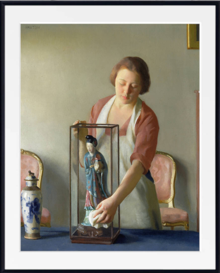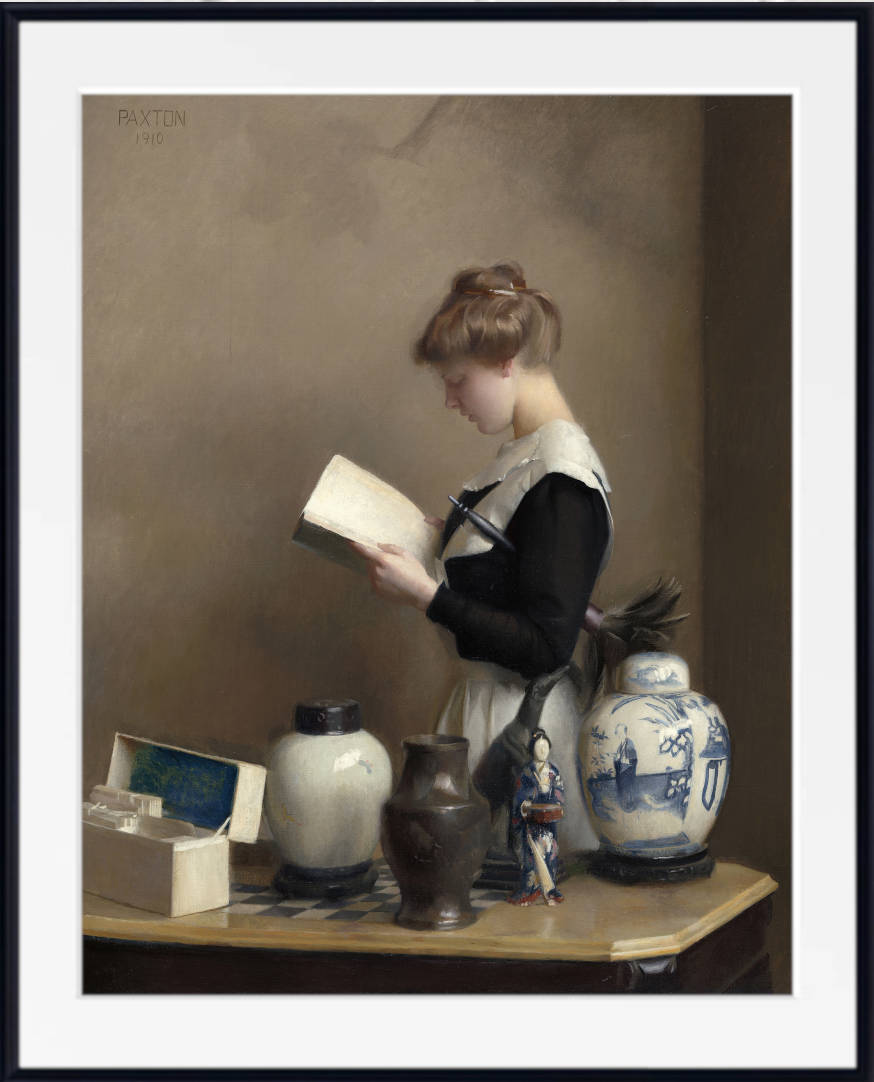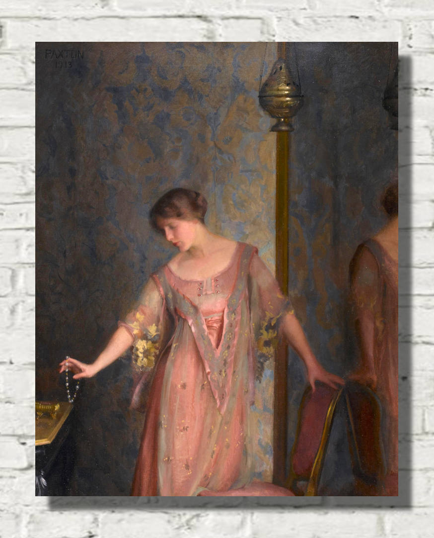 Paxton's works often captured the spirit of the Gilded Age, portraying women in opulent interiors with an air of grace and contemplation. His ability to convey the interplay of light, fabric, and texture has solidified his reputation as a master of realism. Today, Paxton’s paintings are celebrated in prestigious collections worldwide, from the Metropolitan Museum of Art to the Smithsonian American Art Museum.