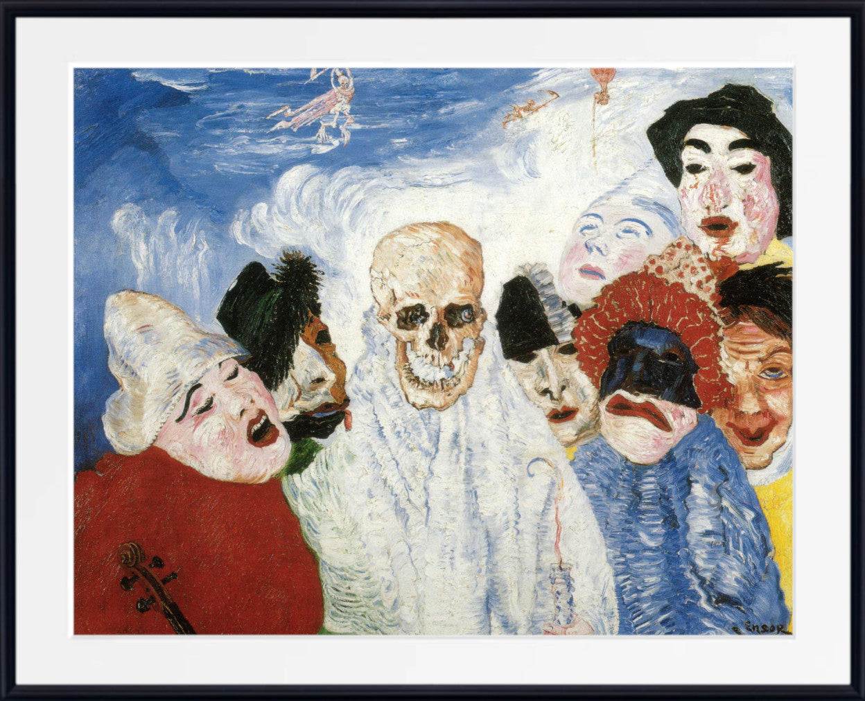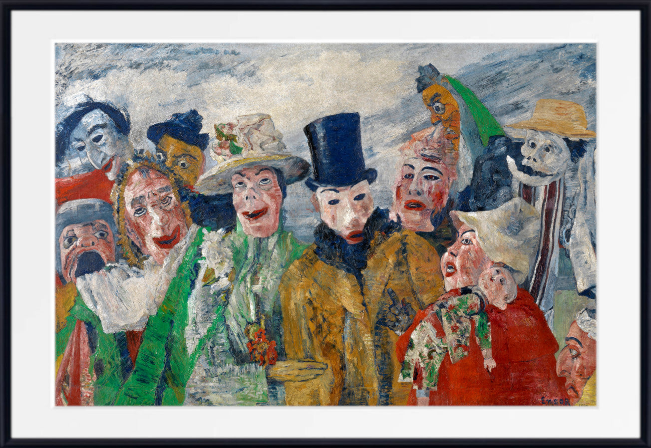 "L'Intrigue," painted by James Ensor in 1890, depicts a scene of social intrigue and drama. Set in a dimly lit room, figures with grotesque masks engage in mysterious interactions, evoking a sense of unease and uncertainty. Ensor's use of bold colors and expressive brushwork intensifies the tension, inviting viewers to unravel the enigmatic narrative behind the masked faces and hidden motives.