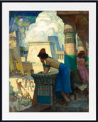 N. C. Wyeth's "The Boy Moses" is a poignant masterpiece that captures a defining moment in biblical history. Depicting Moses as a young man standing on a balcony, the painting skillfully portrays the internal conflict etched across his face as he contemplates the distressing scene below. The composition artfully navigates the tension between Moses' youthful innocence and the weight of responsibility thrust upon him.