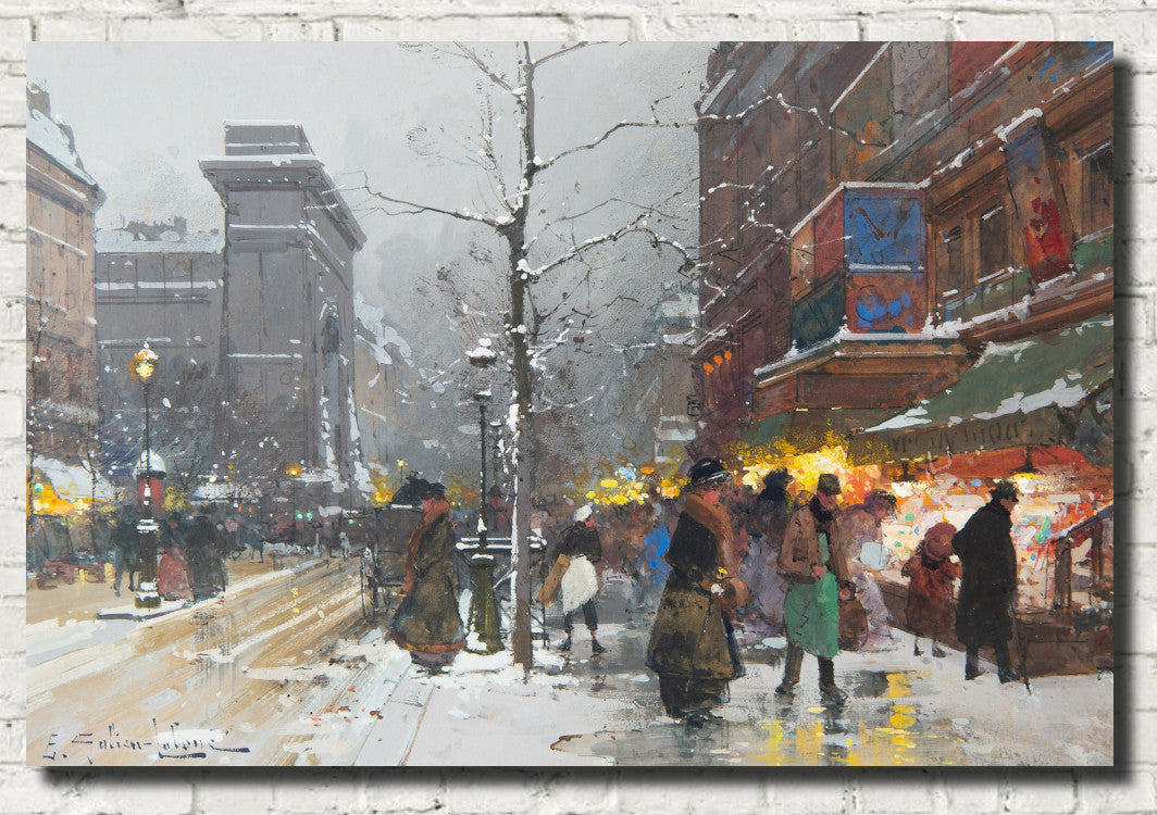 Eugène Galien-Laloue Fine Art Print : Paris, La Porte Saint-Martin, soir d'hiver