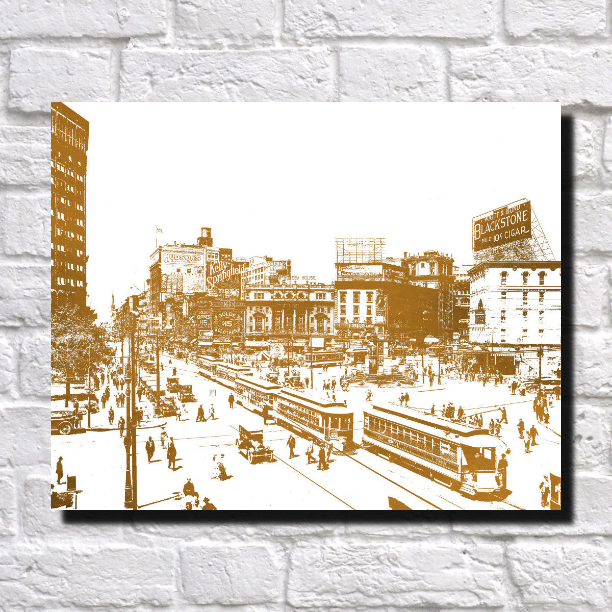 Detroit City Skyline Print Vintage Landscape Poster Feature Wall Art