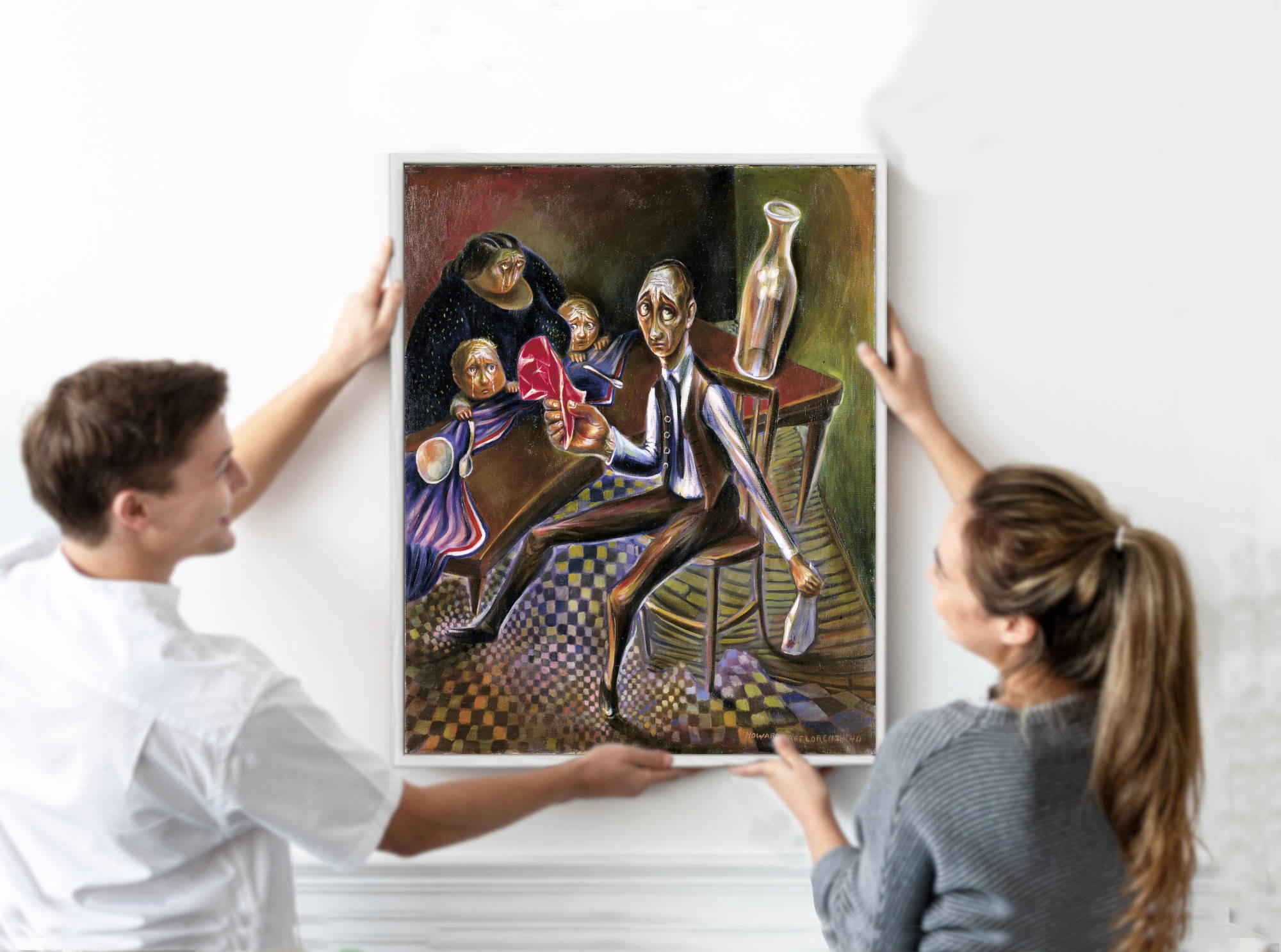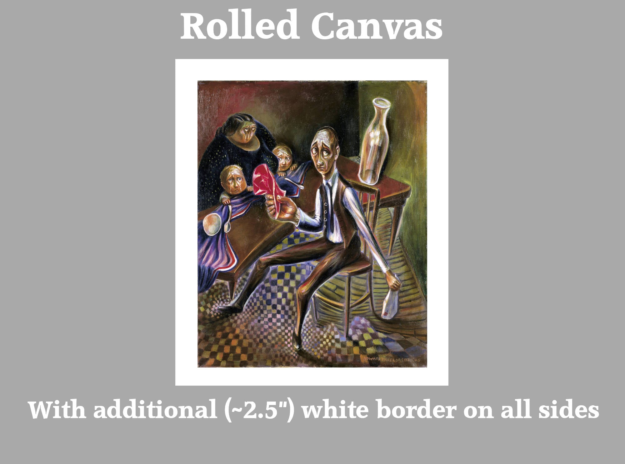 Lorenz’s signature style blends expressive brushwork, cinematic composition, and a muted yet atmospheric color palette. His paintings often center on human relationships and quiet moments of conflict or reflection—qualities fully evident in “Dismissal.” The scene’s subtle gestures and symbolic placement reflect his interest in storytelling through posture, shadow, and spatial tension. This makes Howard Taft Lorenz canvas prints ideal for interiors seeking depth, sophistication, and visual conversation.