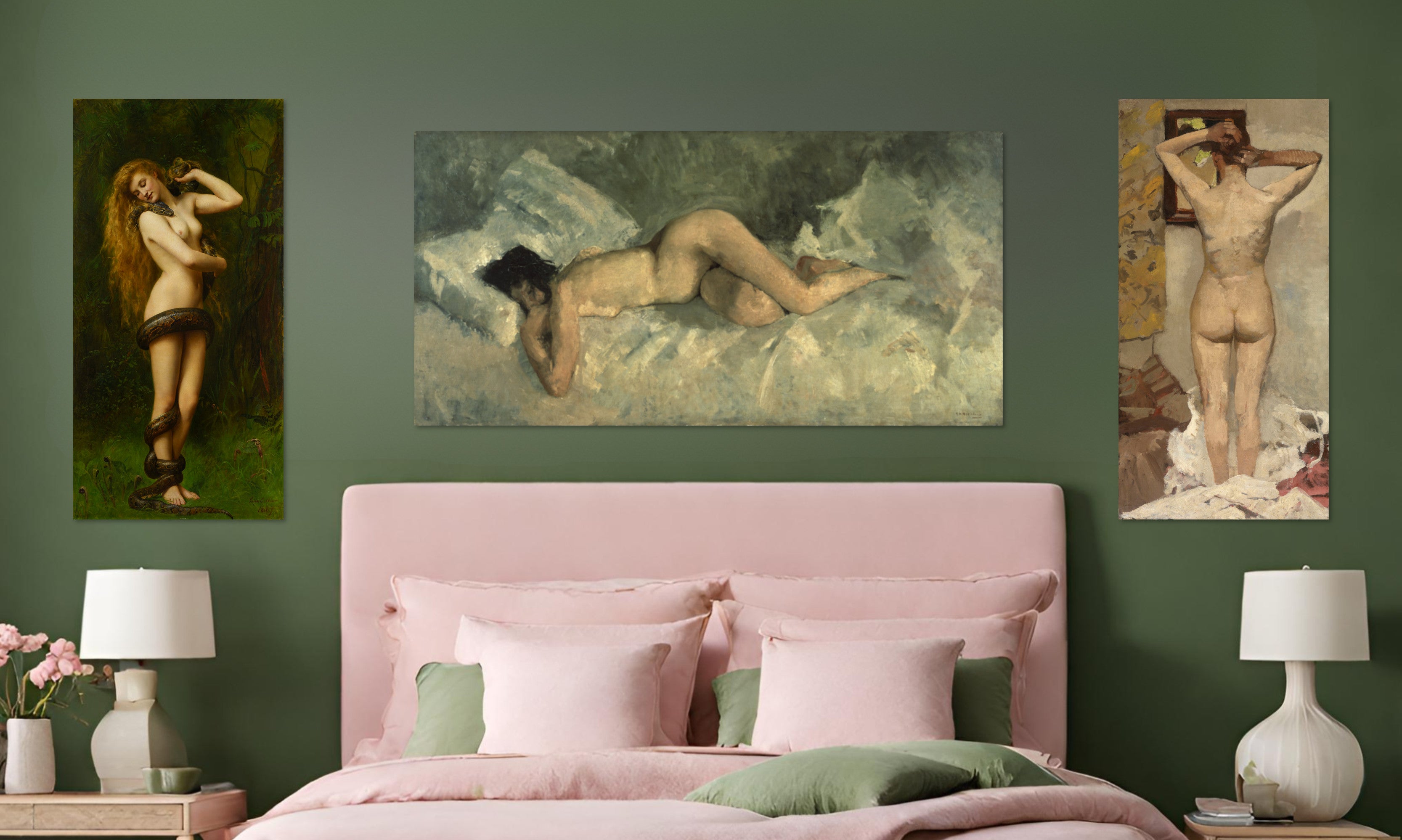 Bedroom Art Gallery Wall Set of 3 Tasteful Nudes Canvas Panels
