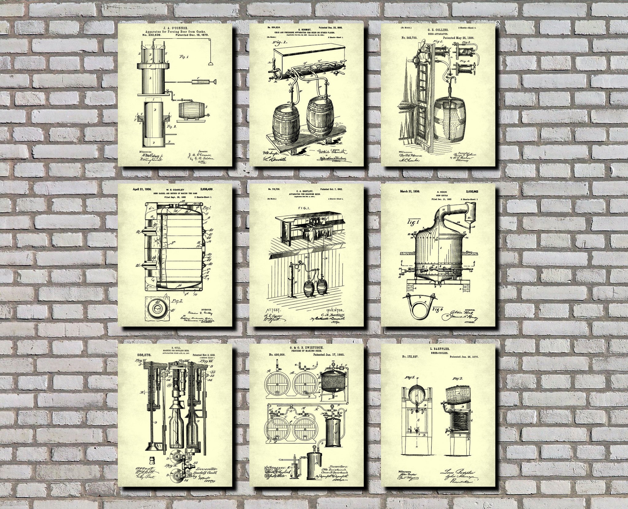 Brewing Patent Prints Set 9 Beer Blueprints Bar Pub Posters