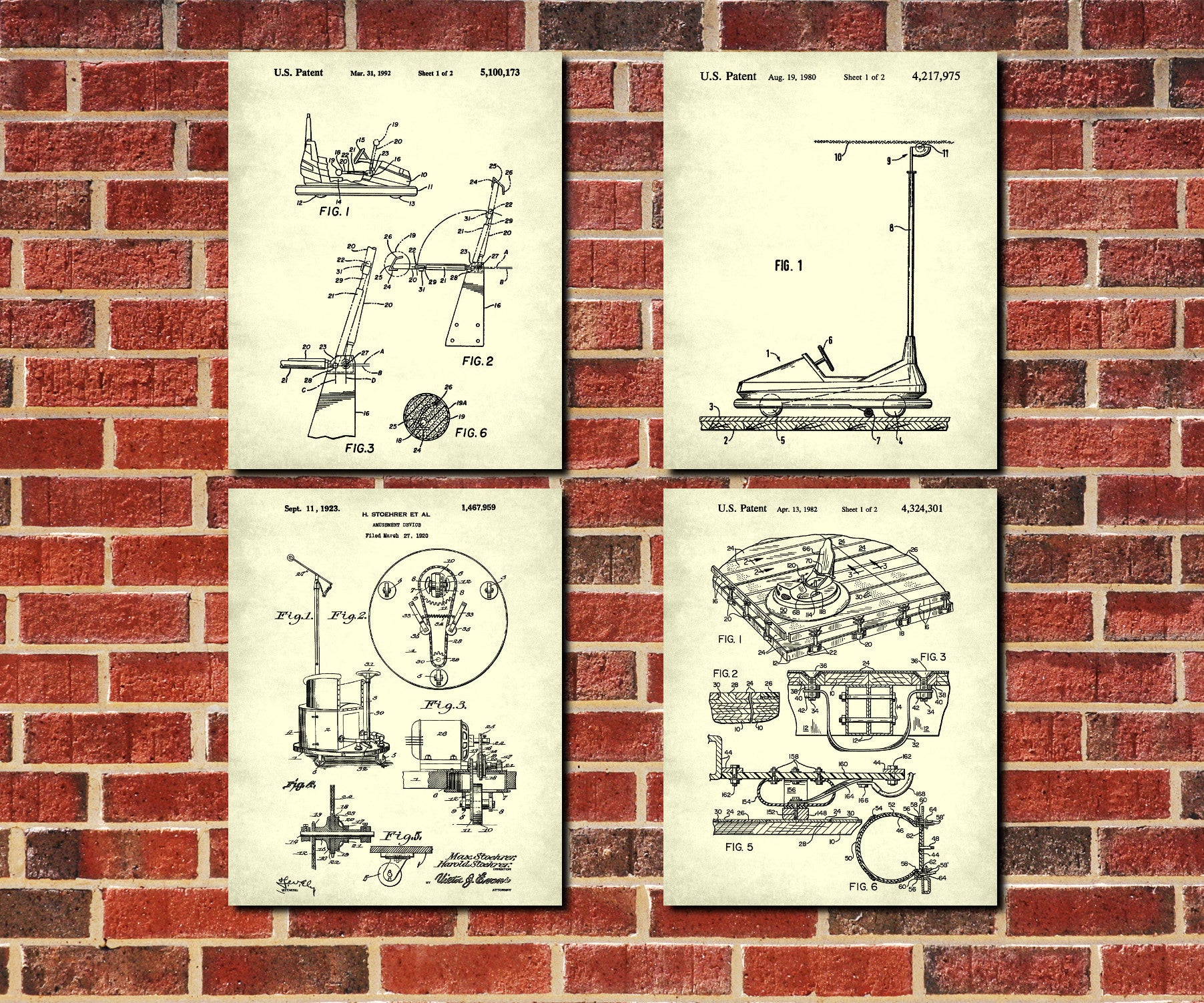 Bumper Cars Blueprints Set of 4 Dodgems Patent Print Posters