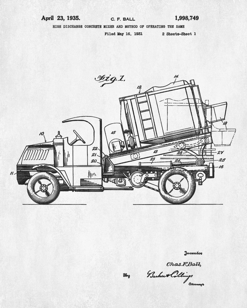 Cement Truck Blueprint Construction Patent Print Building Poster