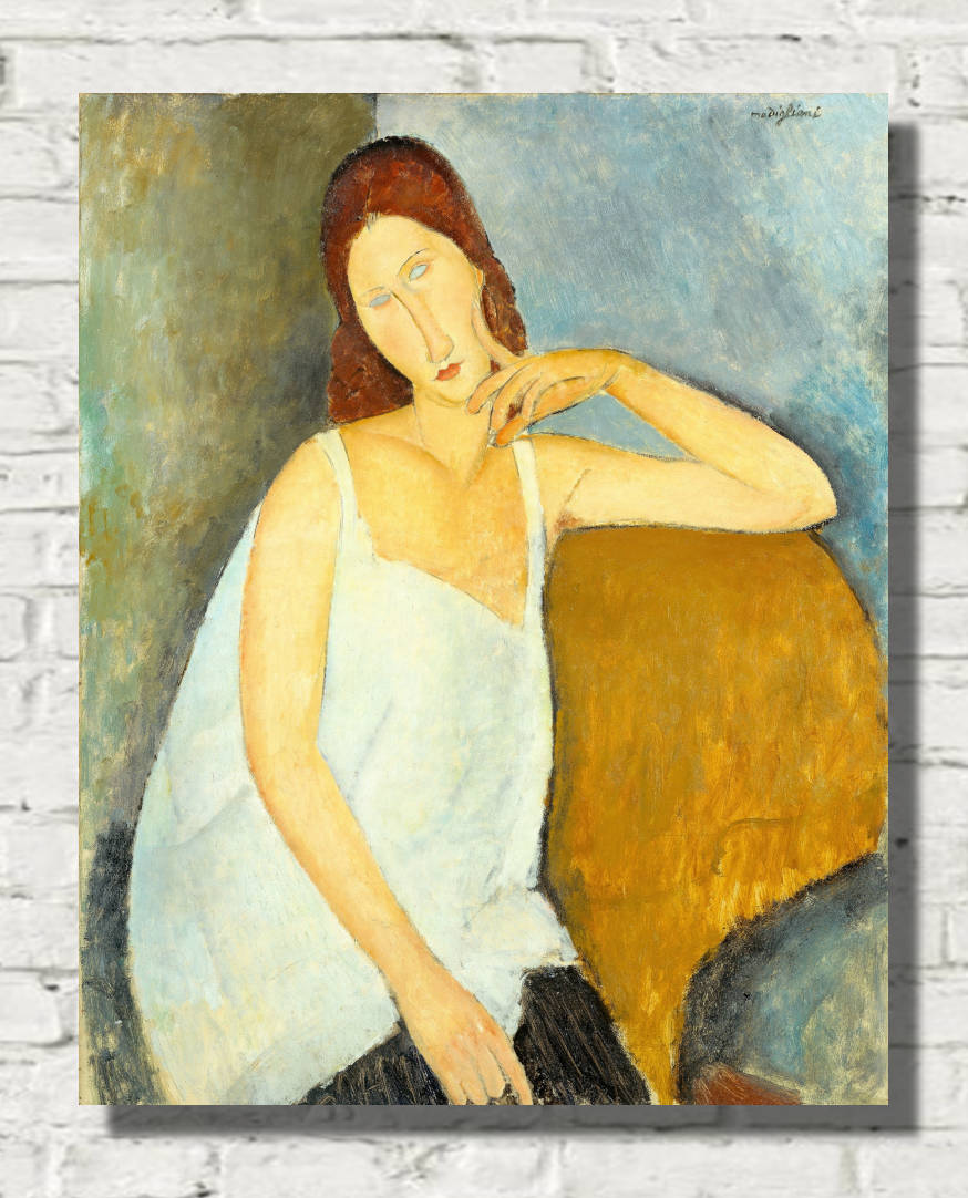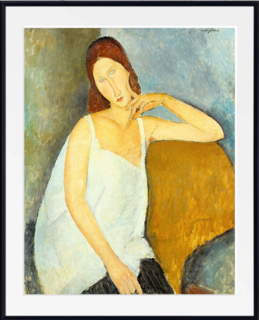 "Portrait of Jeanne Hébuterne" (1918) – Captures the delicate features of Jeanne, highlighting his signature aesthetic.