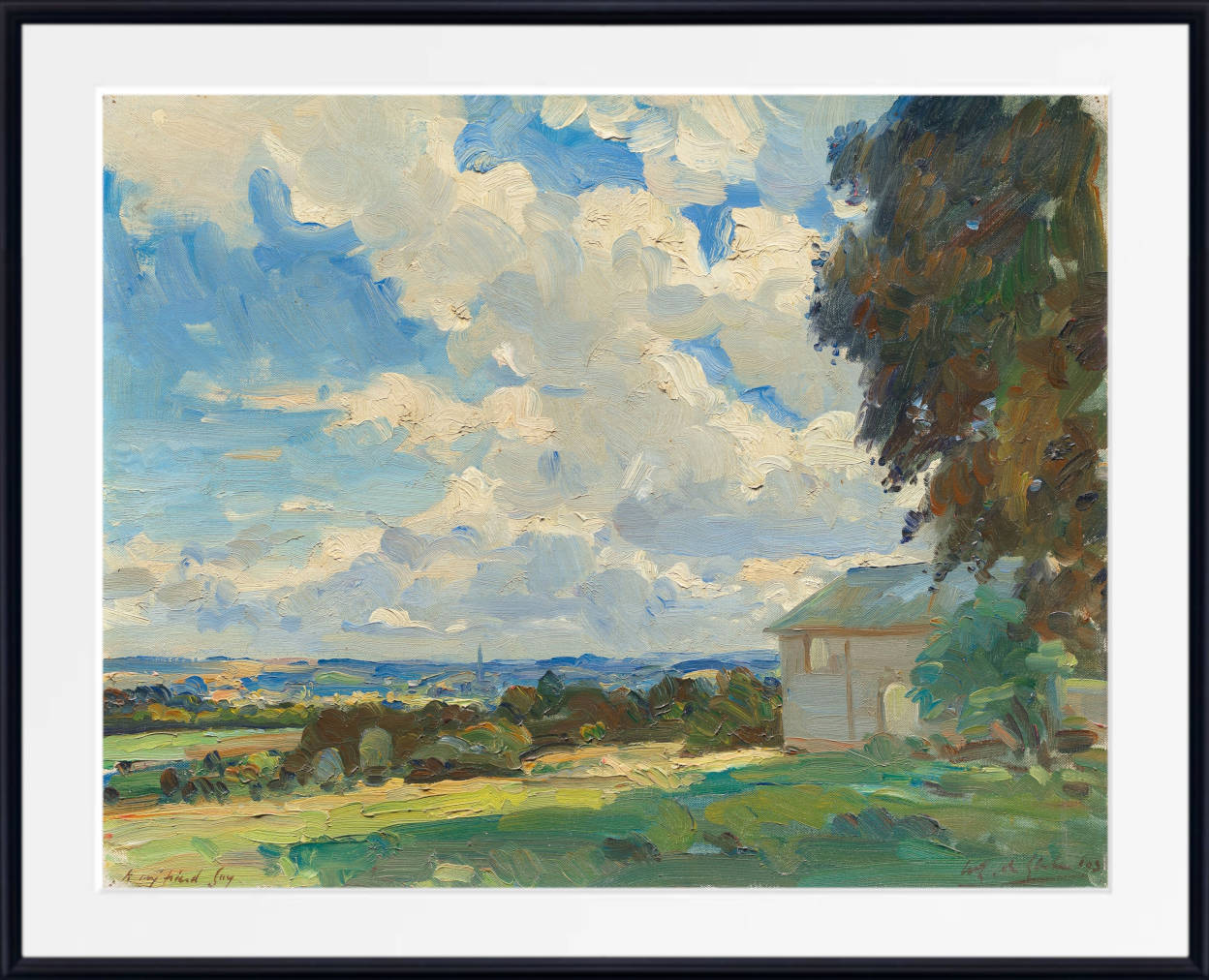 As a prominent figure in British Impressionism, de Glehn contributed to the movement's unique blend of French Impressionist techniques with British artistic sensibilities. His works often depicted the idyllic English countryside, capturing its changing seasons and atmospheric conditions. De Glehn's paintings, such as "Salisbury Cathedral from a Field above Wilton" (1935), showcase his ability to infuse traditional British landscapes with the light and color of Impressionism. His contributions helped define a distinctly British interpretation of the Impressionist movement, focusing on native landscapes and societal life.