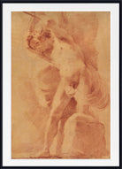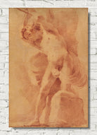 "Male Nude Study" by Italian Baroque artist Ubaldo Gandolfi depicts a powerful and anatomically detailed portrayal of the male form, showcasing the artist's mastery of chiaroscuro and dynamic composition.