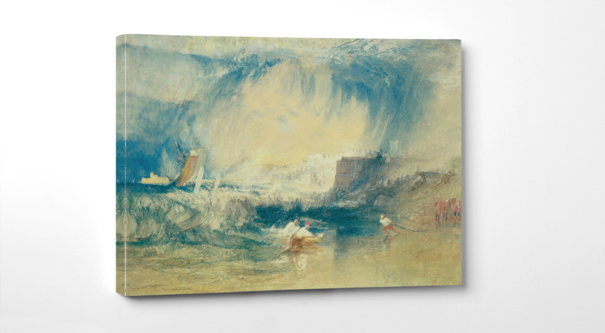 In this masterpiece, Turner expertly captures the natural beauty of Lyme Regis. The cerulean sea stretches to meet the cloud-kissed sky, creating a harmonious blend of colors. The iconic Cobb, a historic stone pier, juts into the water, standing resilient against the crashing waves. The distant cliffs, painted with meticulous detail, add a sense of grandeur to the scene.