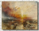 One of the most striking elements of "The Slave Ship" is Turner's use of light. The golden hues of the setting sun pierce through the dark clouds, illuminating the scene in an eerie, otherworldly glow. This juxtaposition of beauty and brutality serves as a powerful commentary on the moral contradictions of the time.