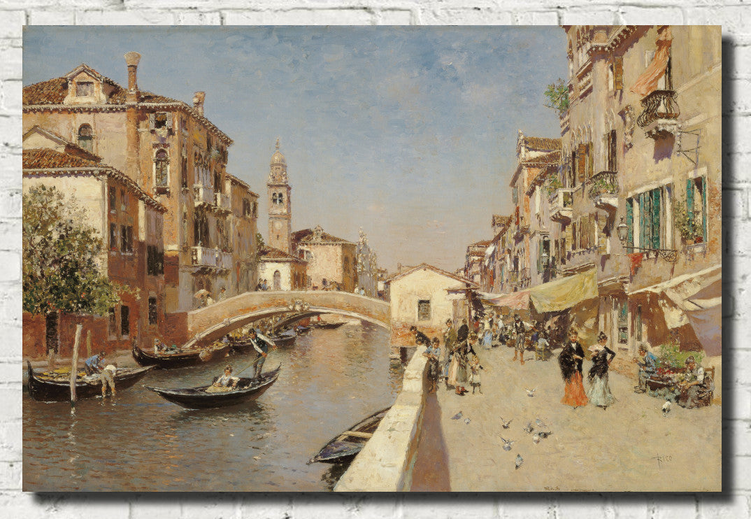 Martin Rico Fine Art Print : Ortega San Lorenzo River with the Campanile of San Giorgio dei greci