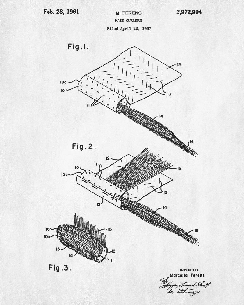Hair Curlers Patent Print Hairdressing Blueprint Salon Poster
