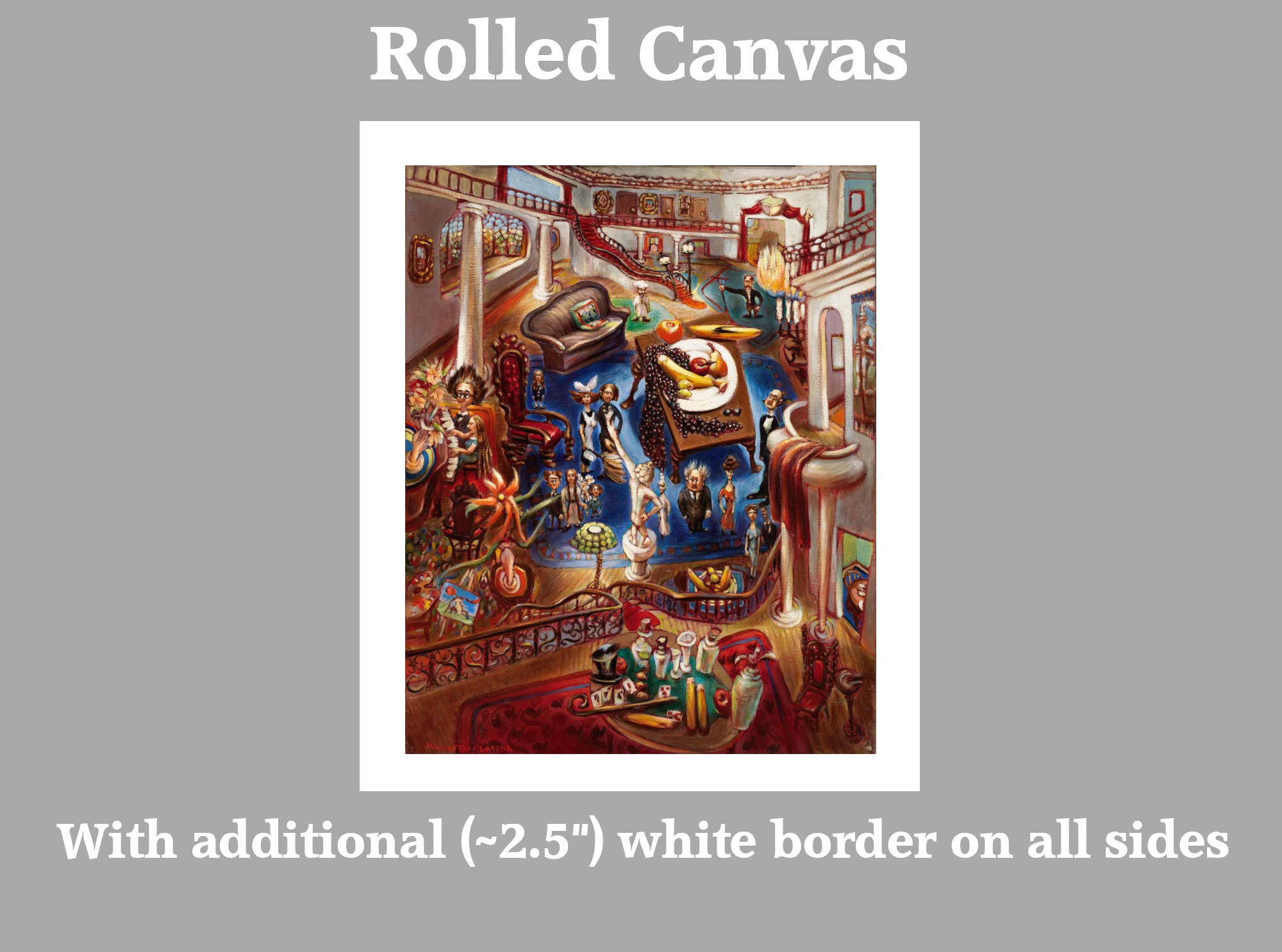 Rolled canvas options have an additional white border of approximately 2.5 inches (7cm) on all 4 sides to aid stretching.