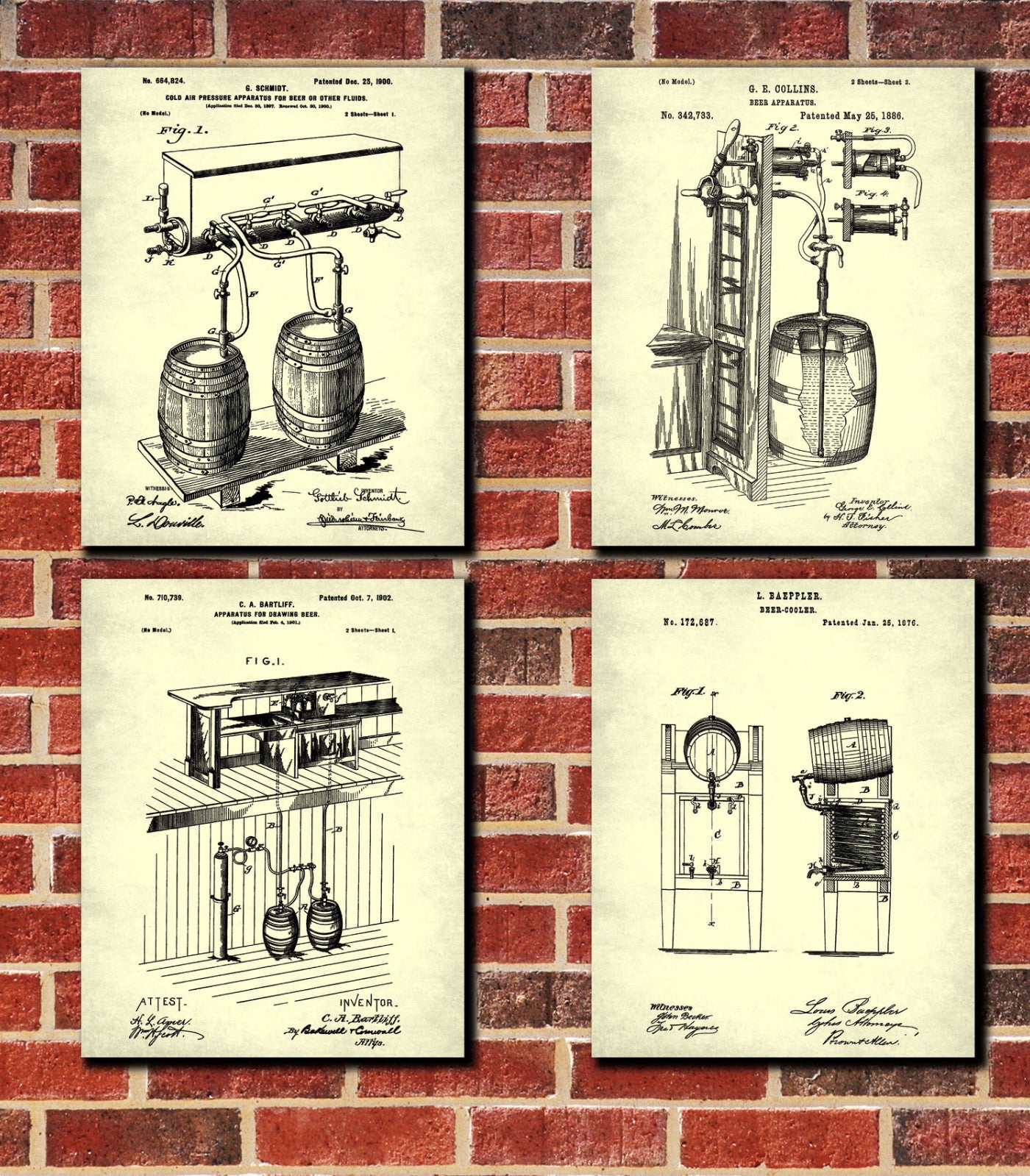 Beer Patent Prints Set 4 Bar Art Brewing Posters