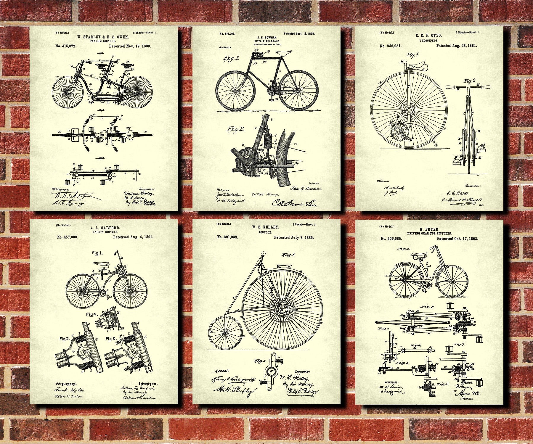 Bicycle Blueprints Set 6 Cycling Patent Prints Posters