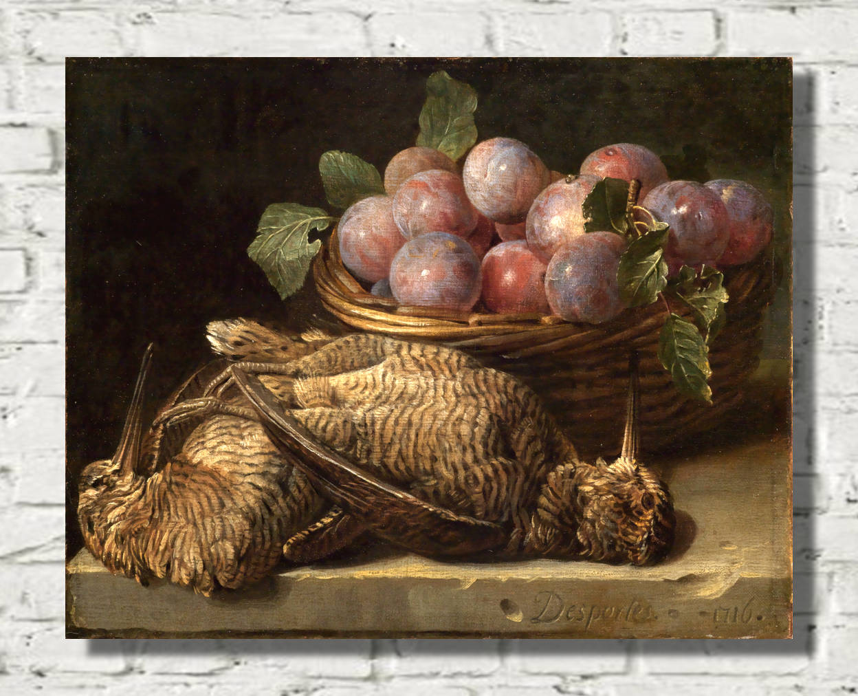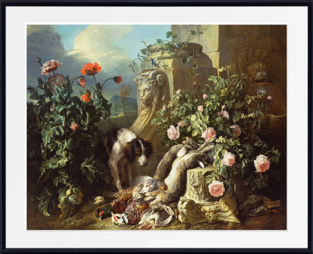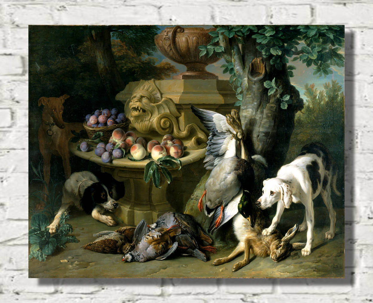 Each giclée print is produced on archival-grade, museum-quality paper or canvas using state-of-the-art printing technology, ensuring rich color depth and sharpness that do justice to Desportes' compositions. Whether it’s his lively hunting dogs or lush, intricate arrangements of flora and fauna, these prints capture the artist's vibrant scenes, inviting viewers to appreciate every detail—from the texture of fur and feathers to the delicate sheen on fruits and flowers.