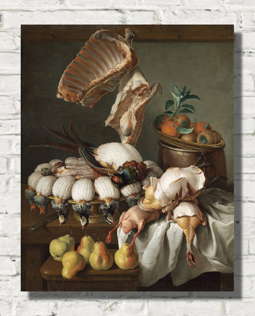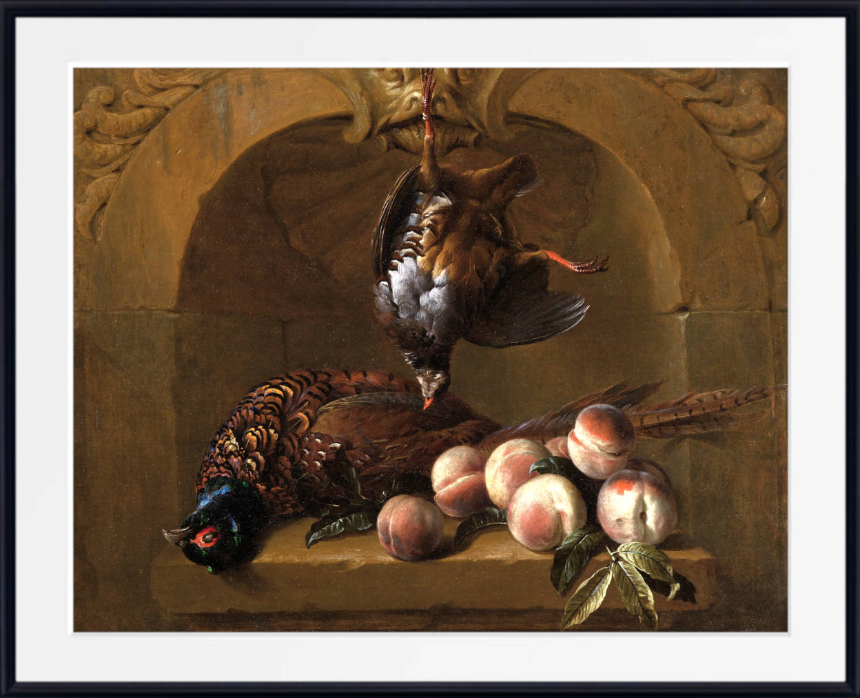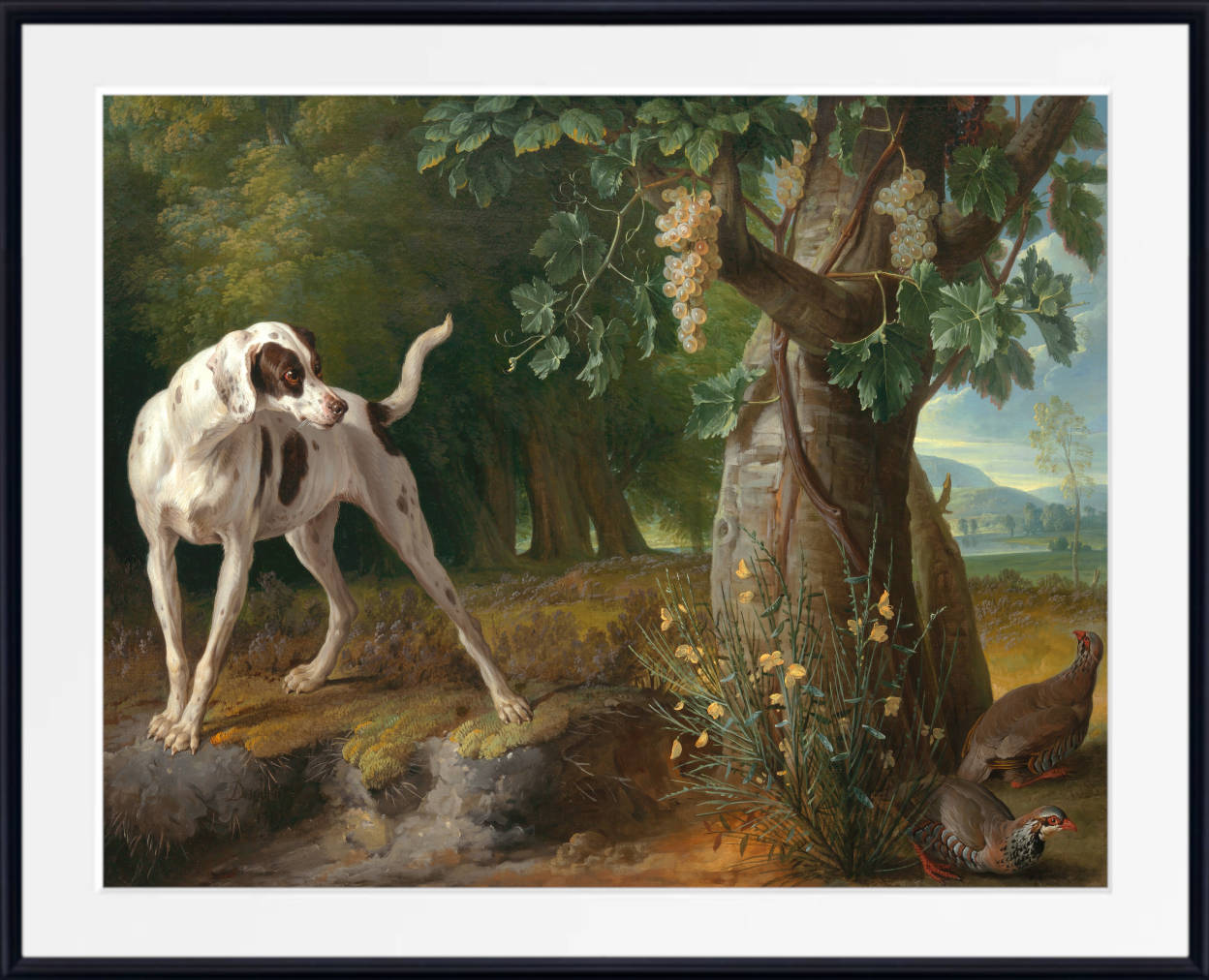 Each giclée print is produced on archival-grade, museum-quality paper or canvas using state-of-the-art printing technology, ensuring rich color depth and sharpness that do justice to Desportes' compositions. Whether it’s his lively hunting dogs or lush, intricate arrangements of flora and fauna, these prints capture the artist's vibrant scenes, inviting viewers to appreciate every detail—from the texture of fur and feathers to the delicate sheen on fruits and flowers.