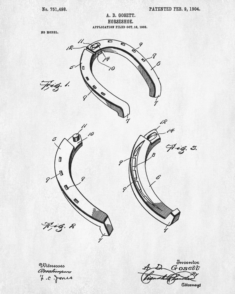 Horse Shoes Patent Print Equestrian Blueprint Riding Art Poster
