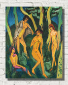 Discover the captivating world of Ernst Ludwig Kirchner's "Vier Akte unter Bäumen (Four Nudes Under Trees)." This German Expressionist masterpiece intricately weaves vibrant colors and bold strokes, portraying the raw essence of human form amidst nature's embrace. Kirchner's avant-garde vision transforms each figure into a symphony of emotions, evoking a powerful connection between humanity and the organic realm. Immerse yourself in the dynamic interplay of light and shadow, as Kirchner's Four Nudes redefine conventional beauty, inviting contemplation and introspection.