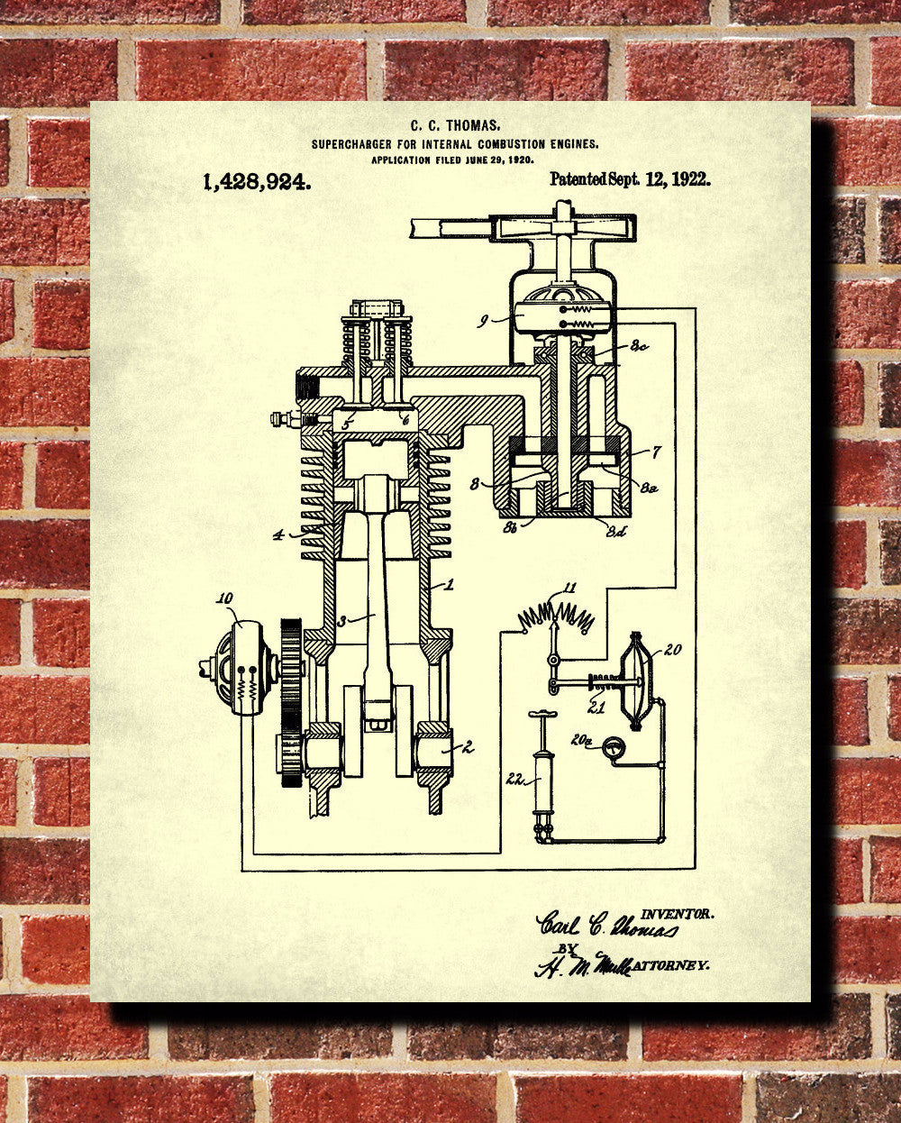 Supercharger Patent Print Engine Blueprint Workshop Poster