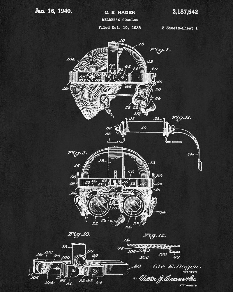 Welding Patent Print Welders Goggles Blueprint Workshop Poster