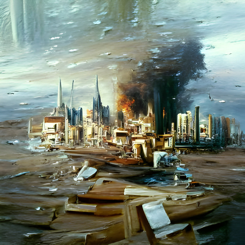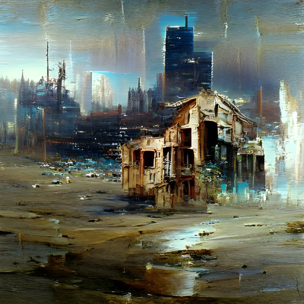 James Lucas is a British abstract artist best known for his large format cityscape paintings. This is one of a series incorporating urban decay and catstrophic destruction of modern urban areas.
