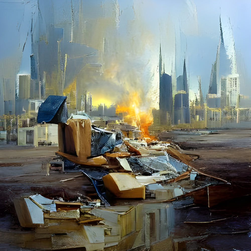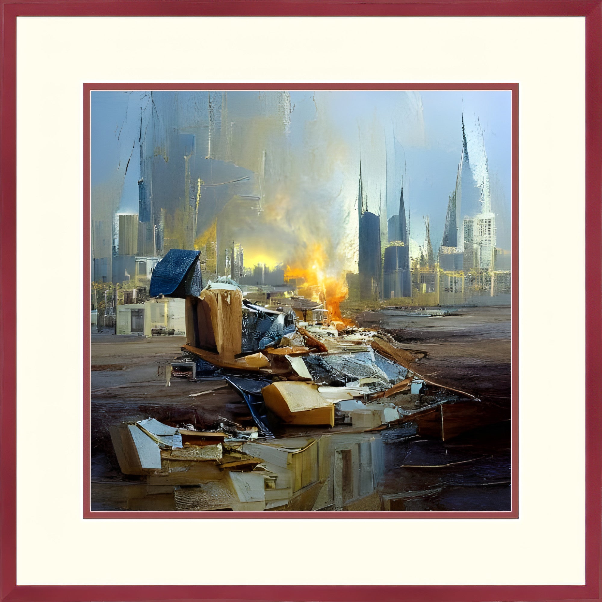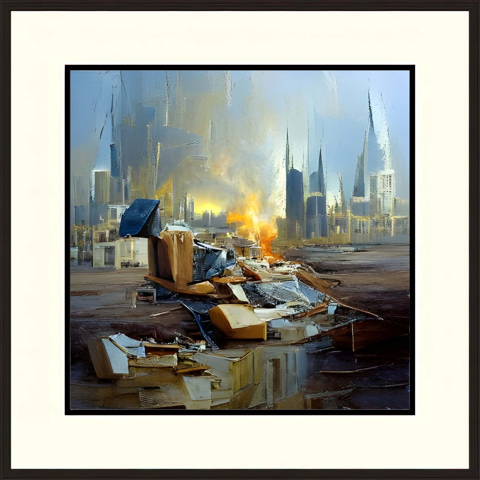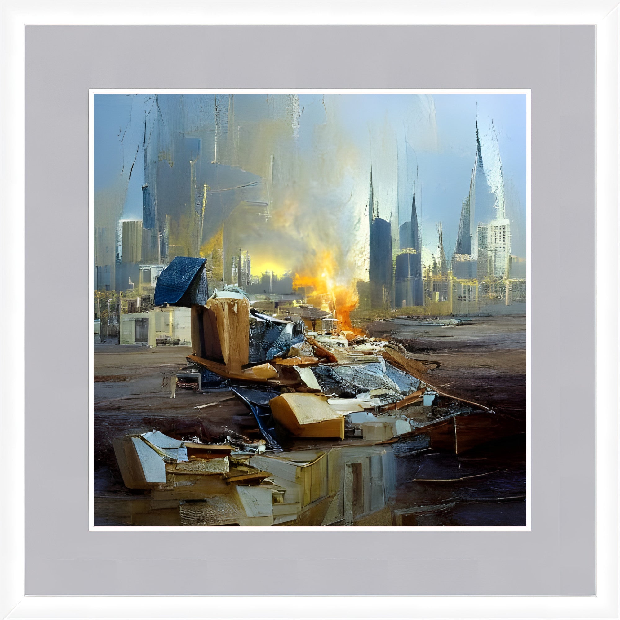 James Lucas is a British abstract artist best known for his large format cityscape paintings. This is one of a series incorporating urban decay and catstrophic destruction of modern urban areas.