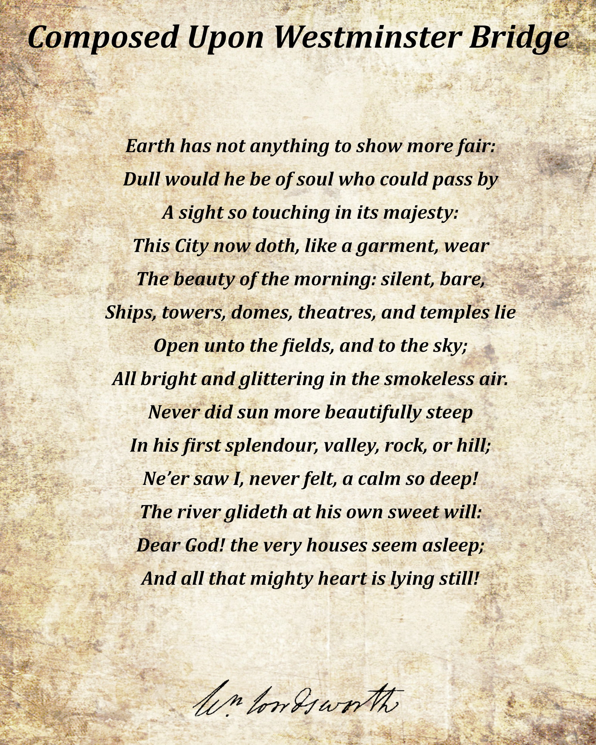 Composed Upon Westminster Bridge, Poem by William Wordsworth, Typography Print