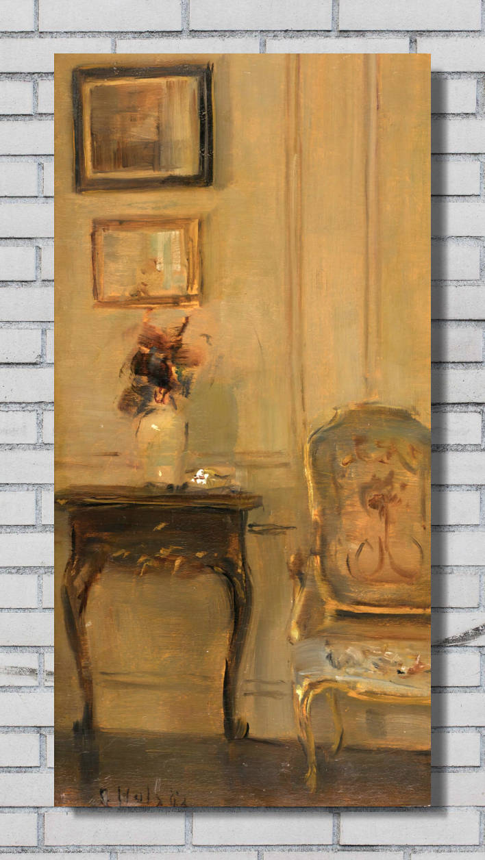 Holsøe’s art is defined by its muted color palette, delicate brushwork, and an extraordinary ability to capture natural light filtering through windows and onto polished floors. His interiors often feature softly draped curtains, antique furniture, and decorative objects that hint at the unseen lives within these spaces. Unlike more dramatic narrative scenes, Holsøe’s paintings invite quiet contemplation, offering a sense of stillness and harmony.