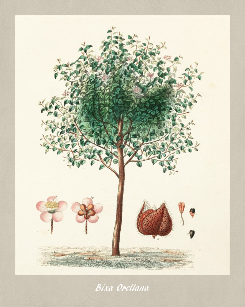 Lipstick Tree Print Vintage Botanical Illustration Poster Art