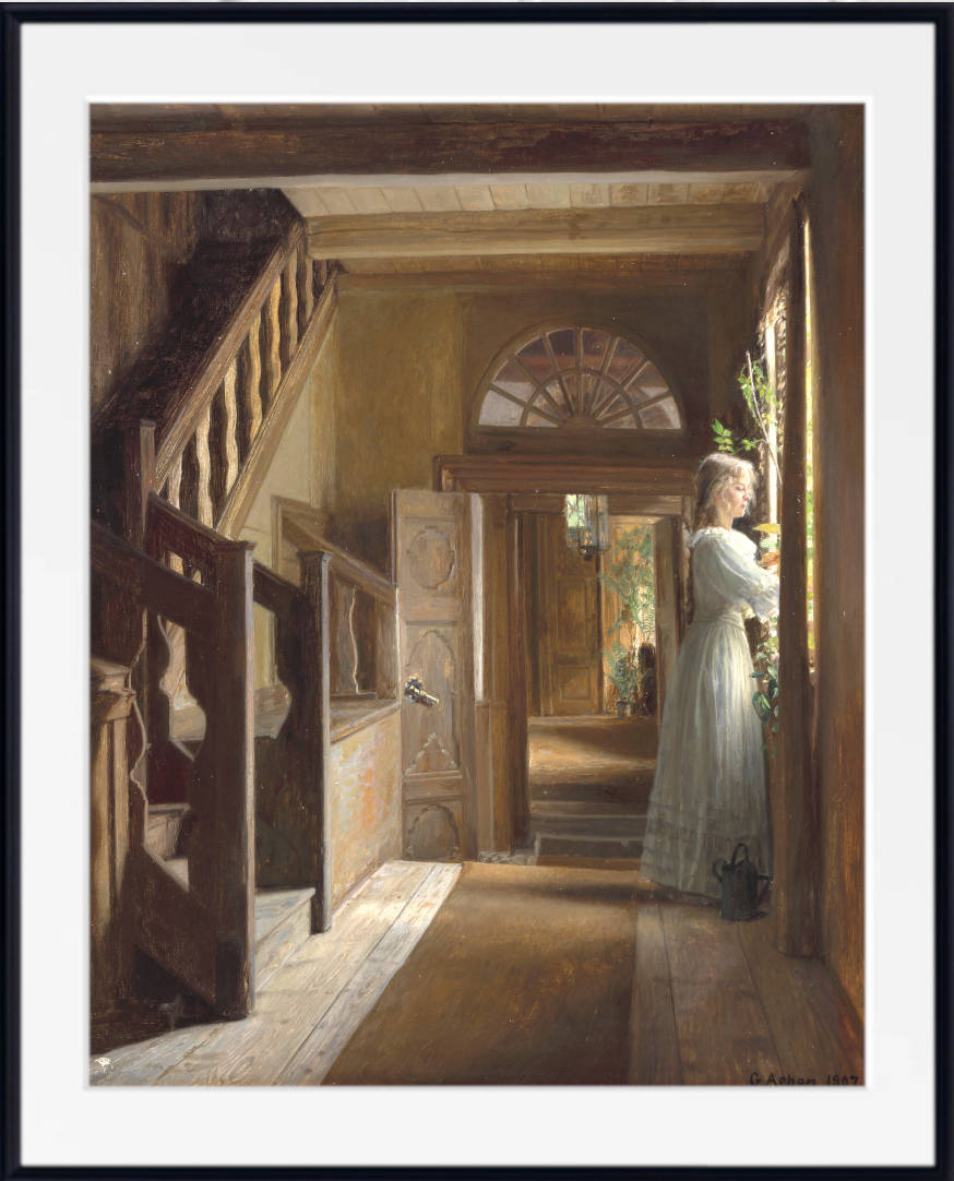 In the 1880s and 1890s, Achen traveled extensively across Europe, studying the works of Old Masters and contemporary painters. Influenced by the Impressionists, particularly their use of light, Achen began integrating modern techniques into his work while maintaining a distinct Nordic sensibility. His exposure to European art movements allowed him to develop a unique approach that combined precision with a poetic interpretation of everyday life.