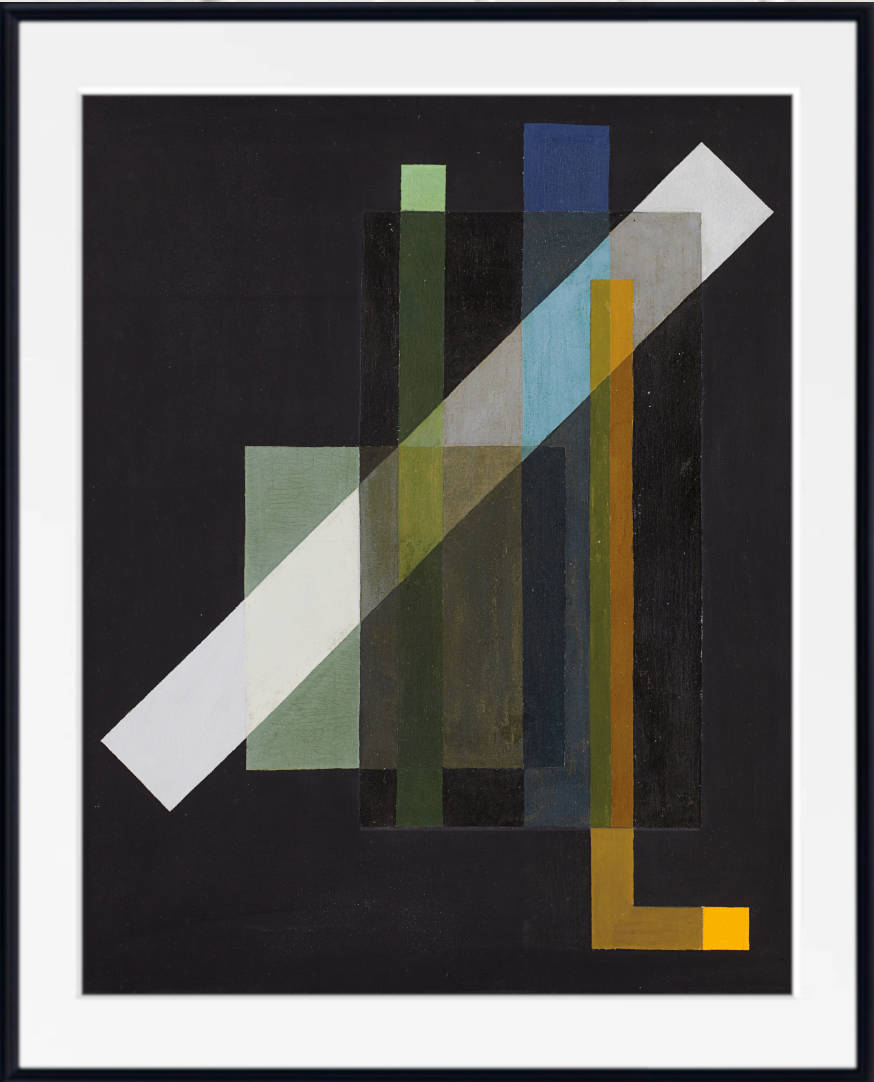 Moholy-Nagy’s painting style is defined by his precise geometric compositions, innovative use of light effects, and exploration of spatial relationships. His works often feature intersecting lines, floating planes, and transparent layers, creating a dynamic sense of depth and movement. Influenced by Constructivism and Suprematism, he embraced modern materials and techniques, including photomontage, collage, and industrial design principles. His abstract paintings are not just visual compositions but conceptual studies of perception, structure, and the interaction between form and light.