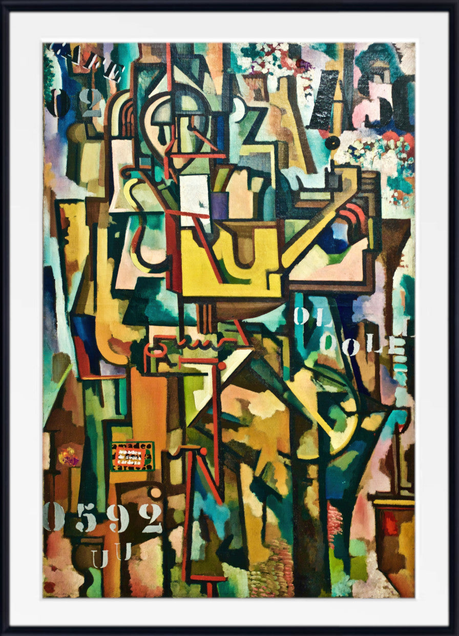 "Metallic Vibrations (Mechanical Geometric Splendor)" (1915) by Portuguese modernist Amadeo de Souza Cardoso captures the dynamism of the machine age through bold geometric forms and metallic hues. The painting exudes energy, reflecting Cardoso's avant-garde spirit and his innovative blend of Cubist and Futurist influences.