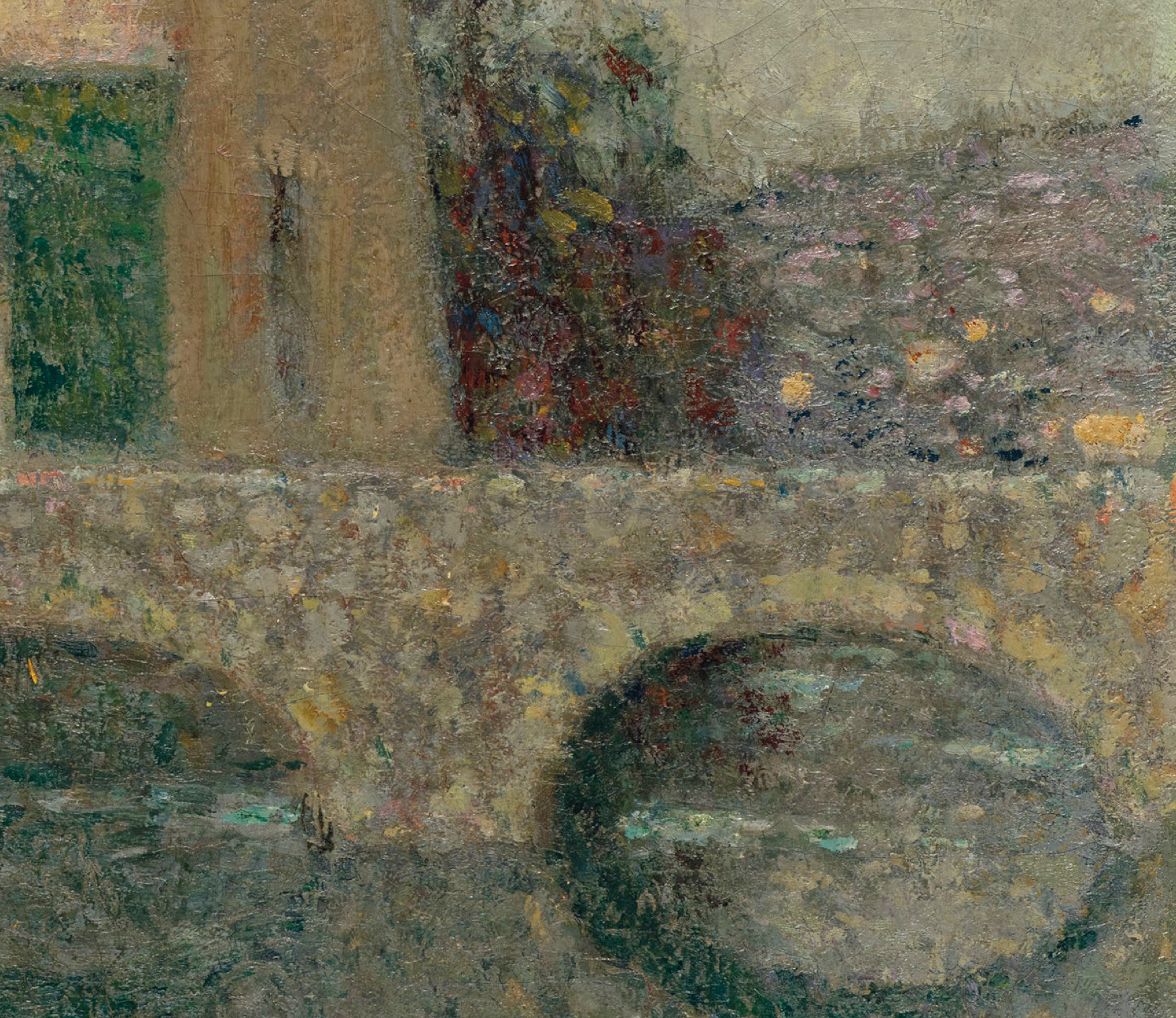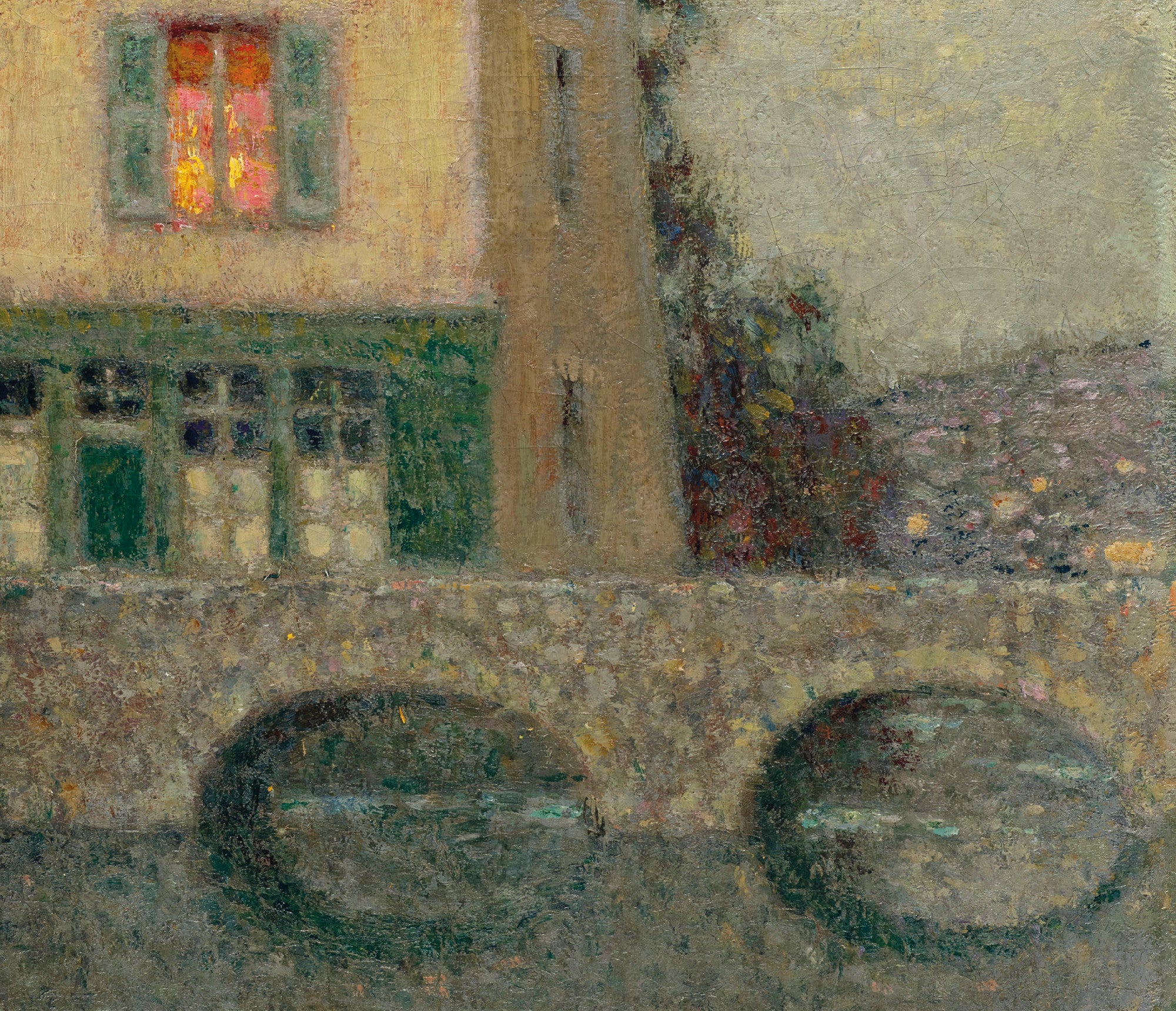 Henri Eugène Augustin Le Sidaner (7 August 1862 – 14 July 1939) who was a contemporary of the Post-impressionists, was an intimist painter known for his paintings of domestic interiors and quiet street scenes. His style contained elements of impressionism with the influences of Édouard Manet, Monet and of the Pointillists discernible in his work. Le Sidaner favoured a subdued use of colour, preferring nuanced greys and opals applied with uneven, dappled brushstrokes to create atmosphere and mysticism. A skilled nocturne painter he travelled widely throughout France and Europe before settling at Gerberoy in the Picardy countryside from where he painted for over thirty years.