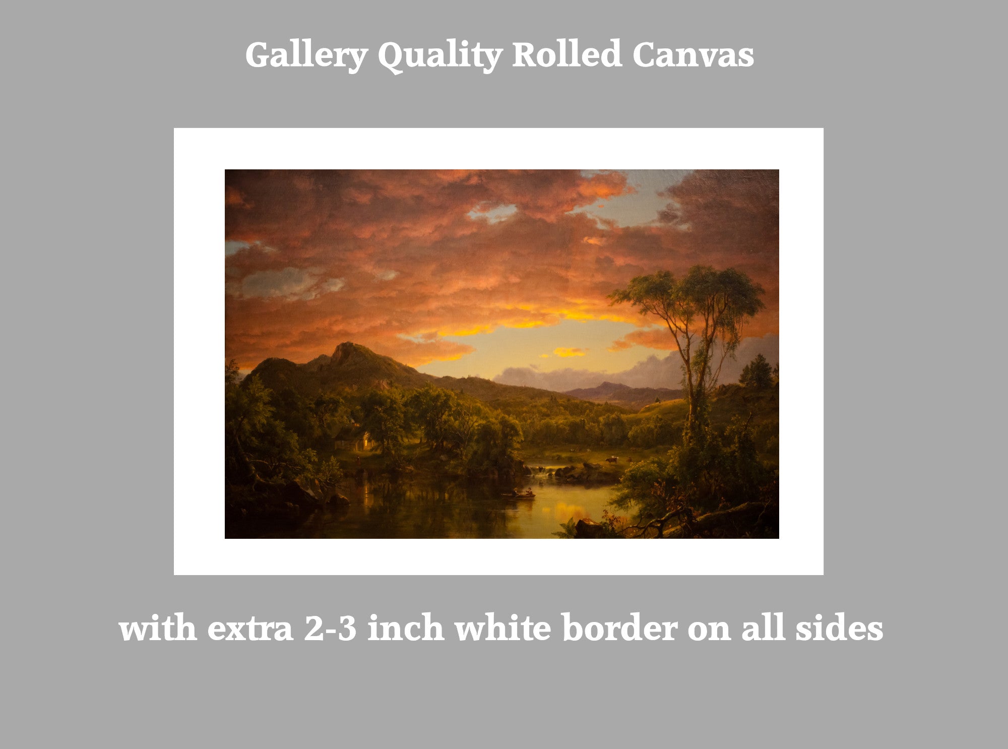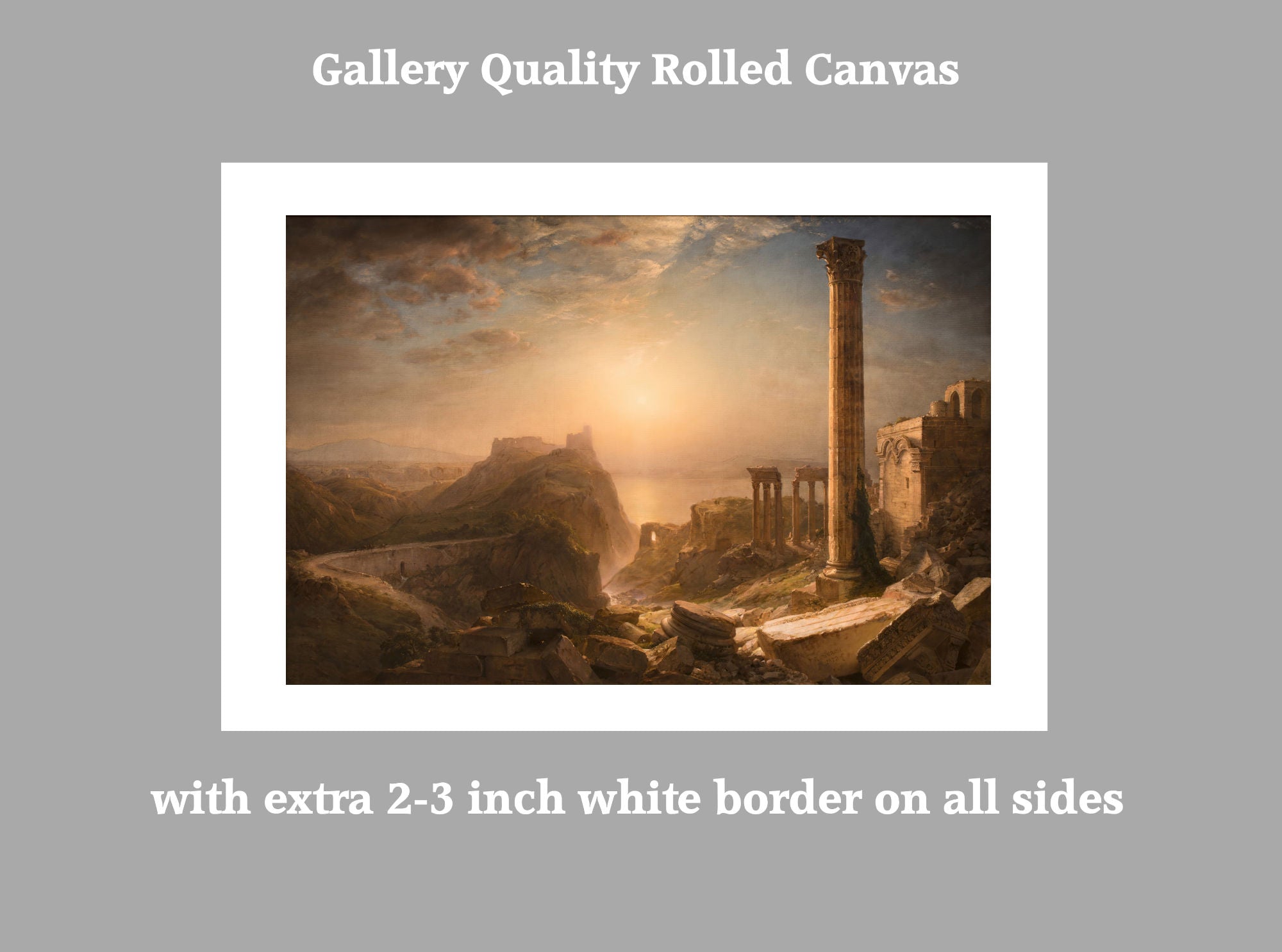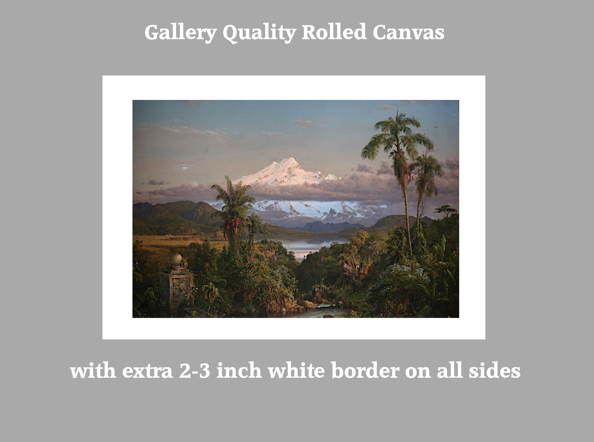 Rolled canvas options have an additional white border of approximately 2.5 inches (7cm) on all 4 sides to aid stretching.