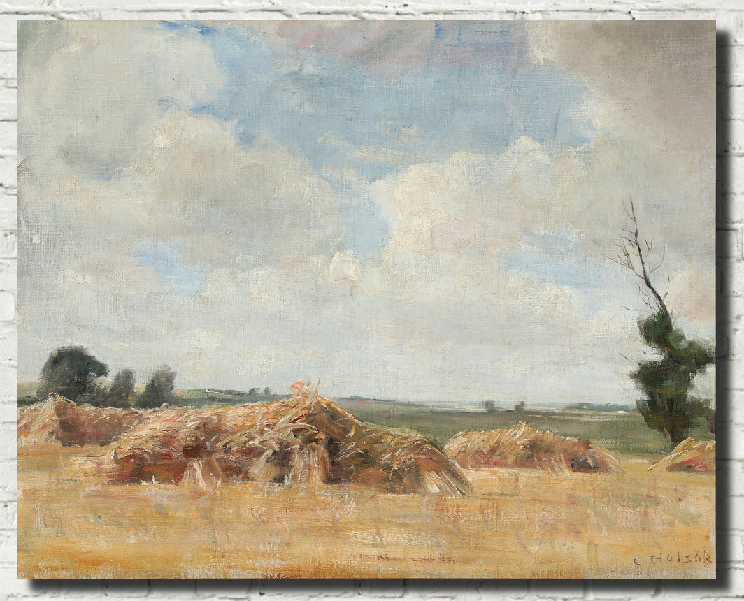 Carl Holsøe Fine Art Print, Autumn landscape with grain troughs