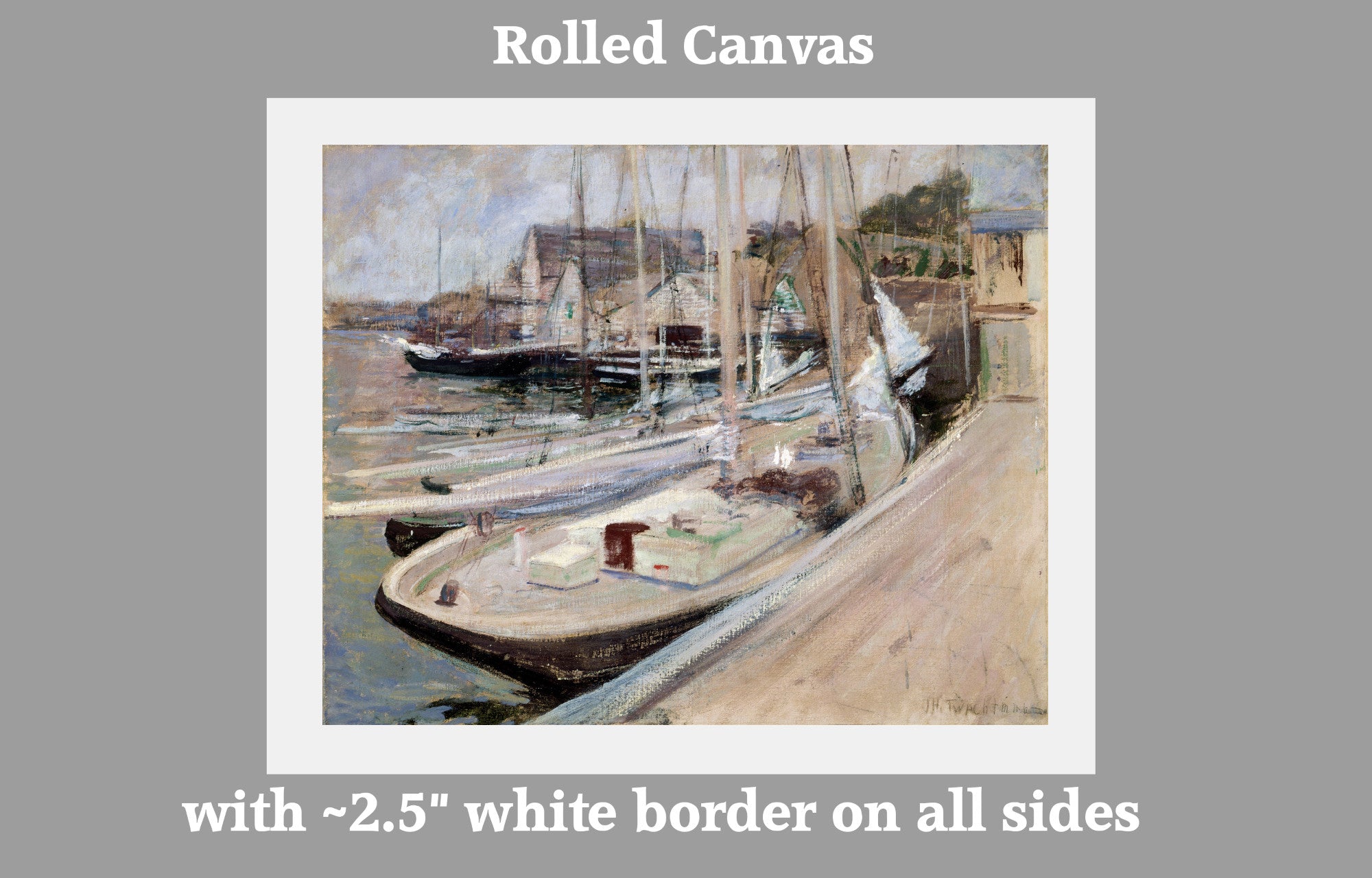 Rolled canvas options have an additional white border of approximately 2.5 inches (7cm) on all 4 sides to aid stretching.