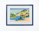 One of the ukiyo-e art series “Thirty-Six Views of Mount Fuji” by Katsushika Hokusai. Sagami Proveince was the name in the ancient times and it located today’s Kanagawa Prefecture. The lake of Hakone, Ashinoko Lake has no ripple on the surface. The thick forest and the trailing haze are around the lake. Mt. Komagatake is on the opposite side of Mt. Fuji and has a calm figure. It is a quiet and solemnity ukiyo-e printing without a person or animal.