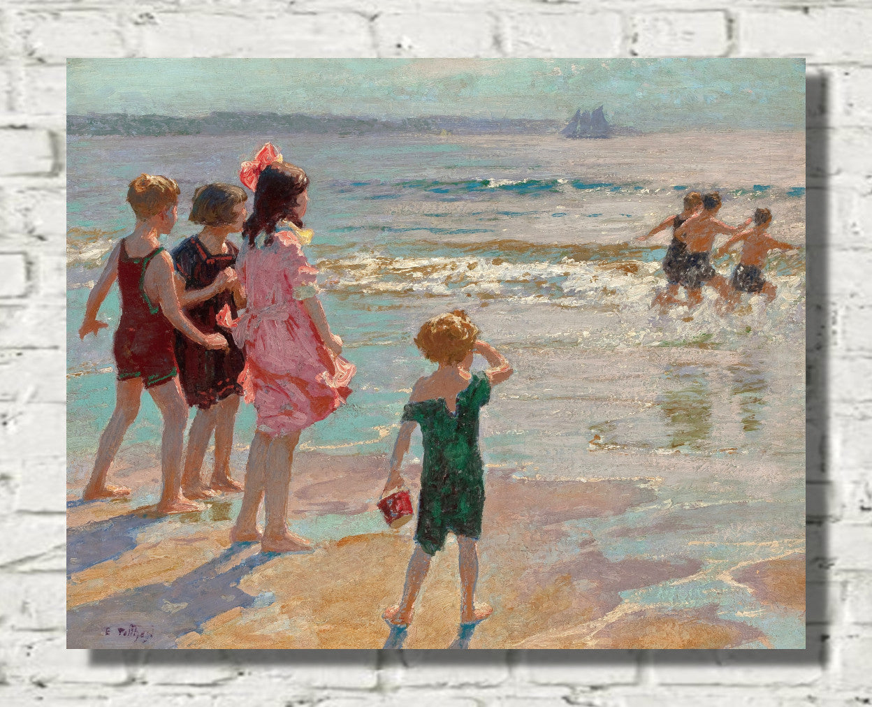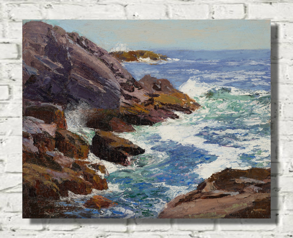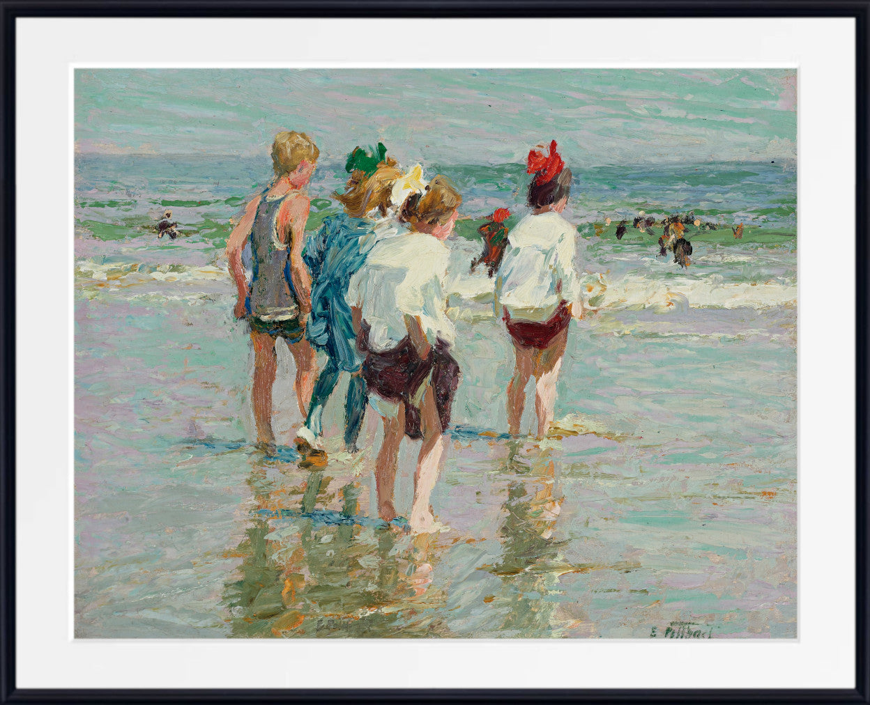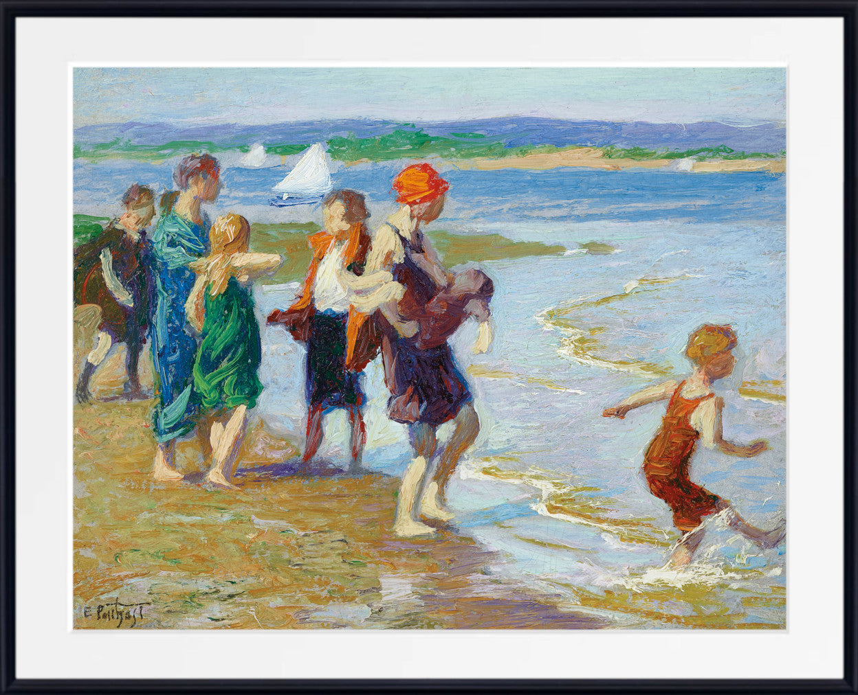 Unveil the serene beauty of Edward Henry Potthast's masterpiece, "Lobster Cove." This coastal landscape painting captures the essence of nature's tranquility, showcasing vibrant hues and meticulous brushstrokes that bring the seaside to life. Potthast's skillful use of light and color creates a captivating scene, where the play of waves and the coastal charm harmonize on canvas. "Lobster Cove" is a testament to the artist's ability to evoke the soothing allure of the ocean, making it a timeless addition to any art collection.