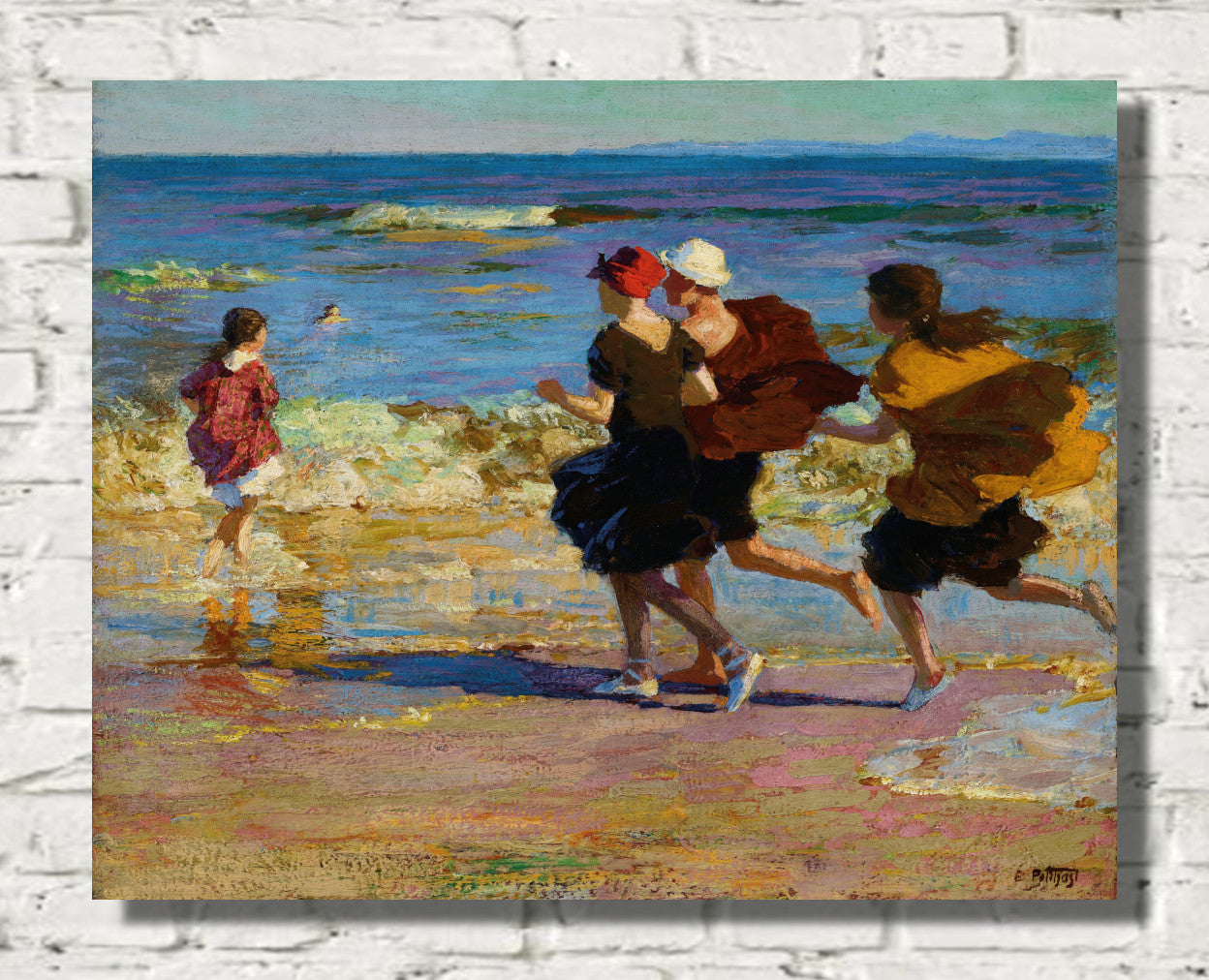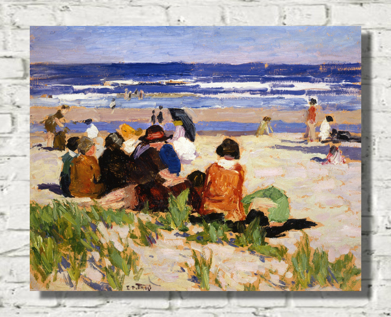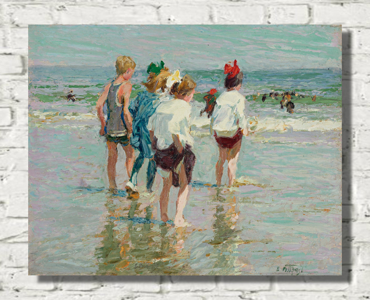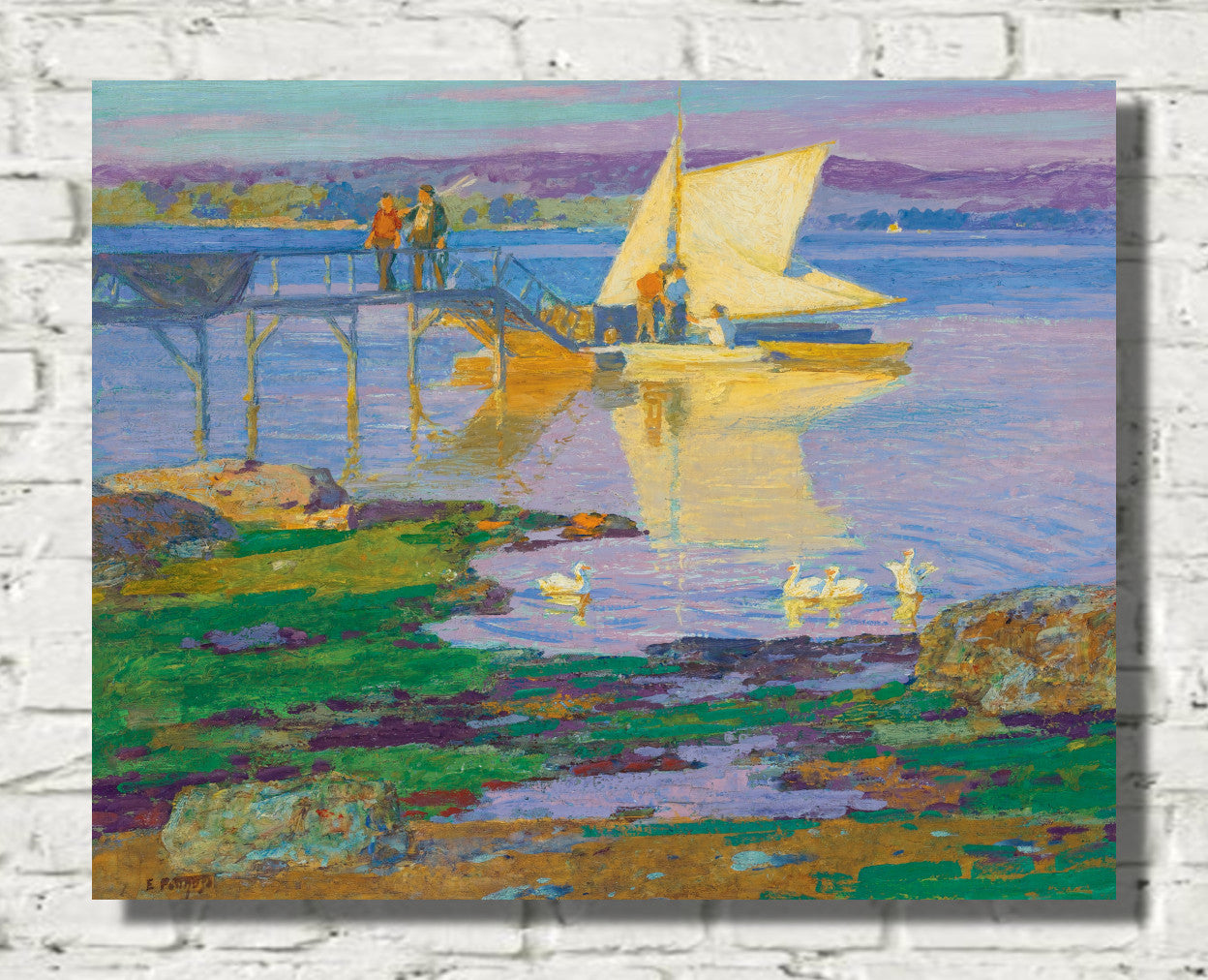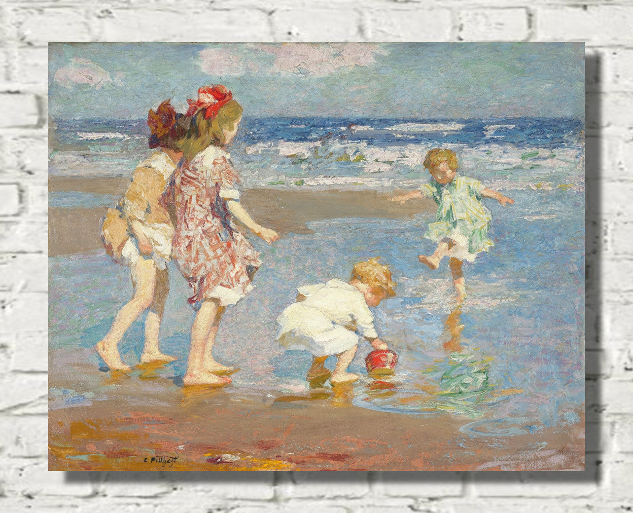 Unveil the serene beauty of Edward Henry Potthast's masterpiece, "Lobster Cove." This coastal landscape painting captures the essence of nature's tranquility, showcasing vibrant hues and meticulous brushstrokes that bring the seaside to life. Potthast's skillful use of light and color creates a captivating scene, where the play of waves and the coastal charm harmonize on canvas. "Lobster Cove" is a testament to the artist's ability to evoke the soothing allure of the ocean, making it a timeless addition to any art collection.